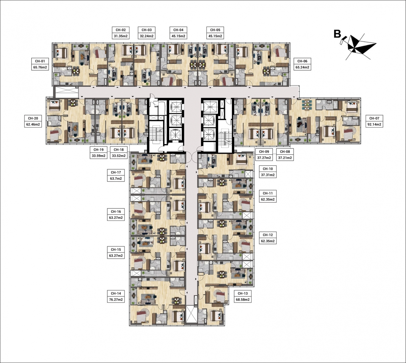 • Diện tích: từ 31,35 – 92,14 m2
