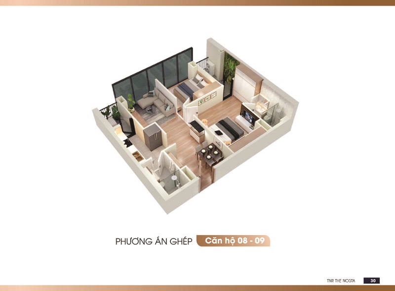 • Đúng như chia sẻ của chủ đầu tư, khu căn hộ TNR The Nosta được thiết kế rất thông minh, giúp tối ưu hóa diện tích cũng như công năng sử dụng của mỗi phòng. Hệ thống logia, vách kính, cửa sổ được bố trí một cách khoa học giúp cả căn hộ luôn thông thoáng, ngập tràn ánh sáng và gần gũi với thiên nhiên.