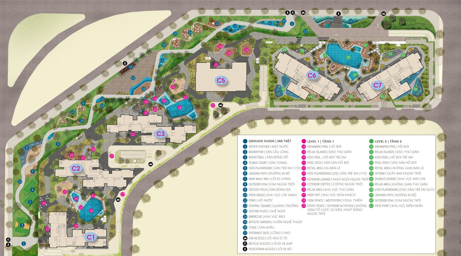 • Diện tích khu tầng hầm: 150.000 m2 - 3 tầng hầm.