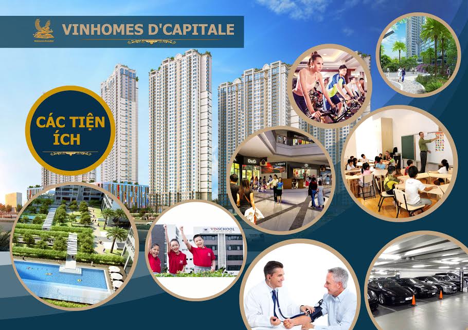• Ngoài ra D’. Capitale còn có hệ thống các tiện ích đẳng cấp khác như: Bể bơi ngoài trời, bể bơi bốn mùa trong nhà, cổng chào đẹp mắt và sang trọng, đài phun nước, khu vui chơi hướng nghiệp cho trẻ em, Vườn hoa đi dạo, nhà hàng,khu cafe , phòng tập gym, Spa chăm sóc sắc đẹp…
