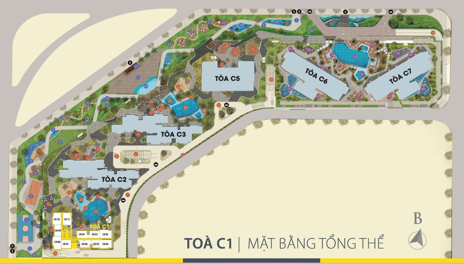• Diện tích khu nhà ở: 165.000 m2 gồm 4 tòa căn hộ (cao từ 39 - 45 tầng)