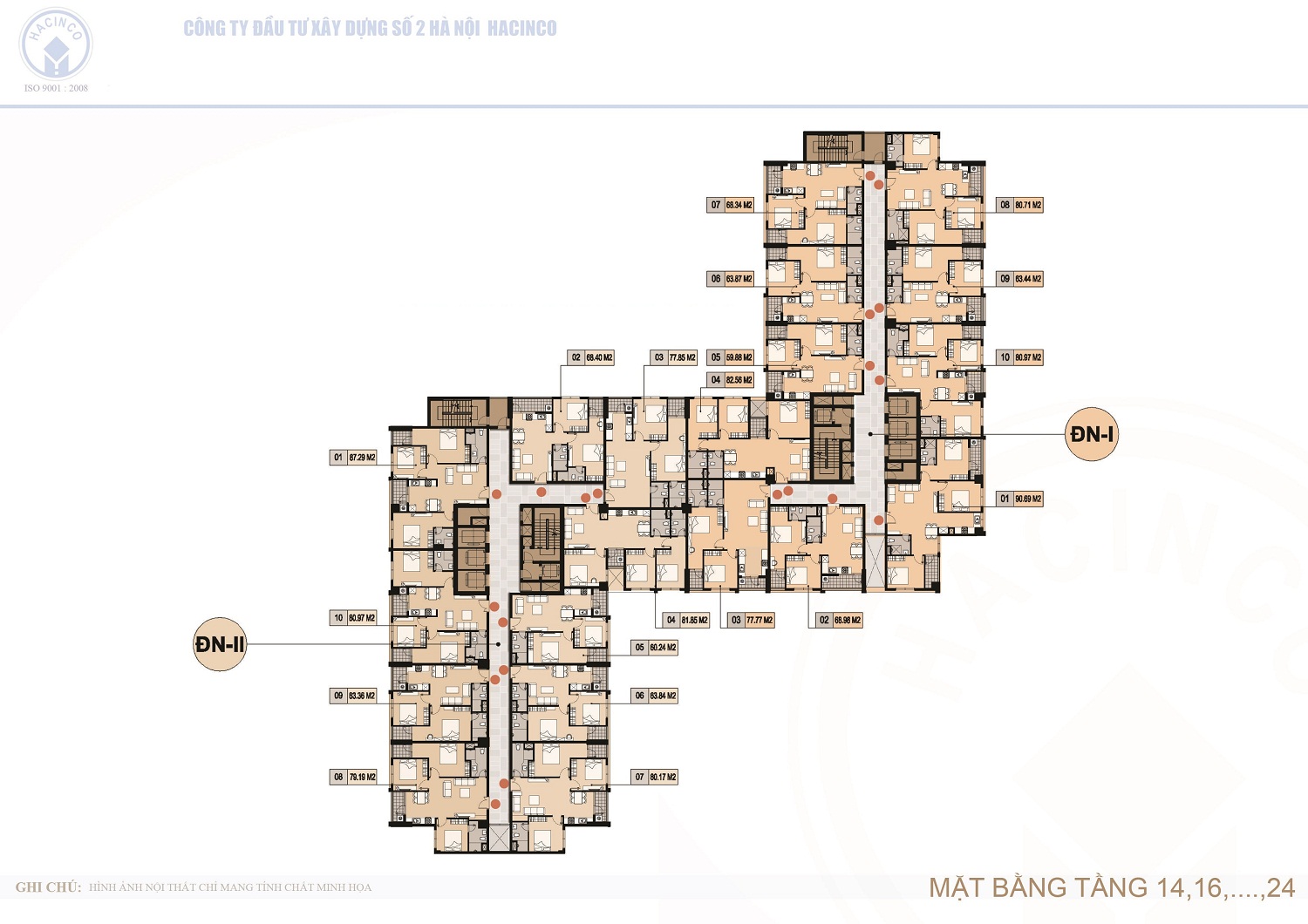 • Hacinco Complex cao 33 tầng sẽ cung cấp 360căn hộ với nhiều loại diện tích từ loại căn hộ đơn cho đến những căn hộ 2-3 phòng ngủ có diện tích từ 40-119m2. Tại mỗi toà nhà đều có tầng hầm để xe với sức chứa hơn 500 chỗ, tầng một là Trung tâm thương mại với đầy đủ các dịch vụ tiện ích cho một khu đô thị hiện đại.