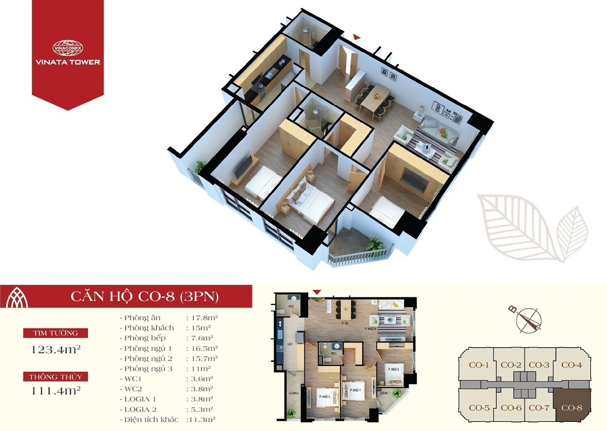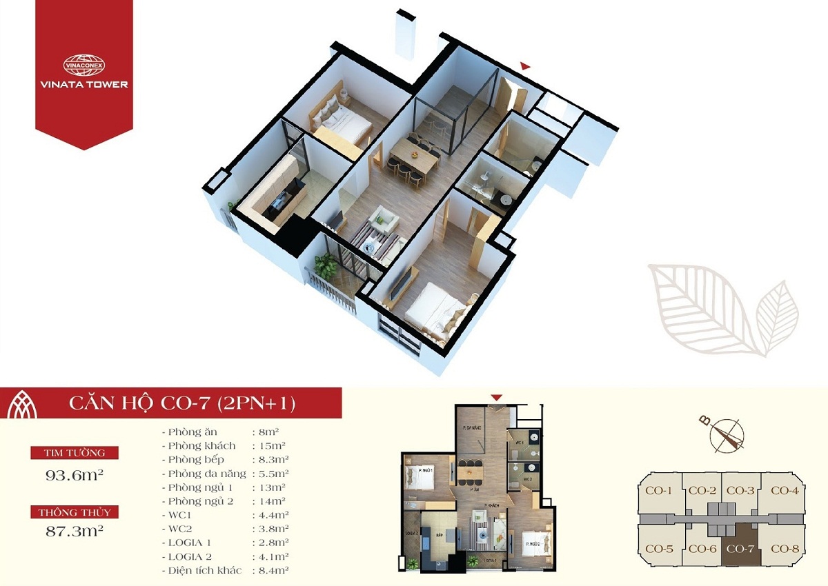 • Các căn hộ Vinata Tower cũng được chú trọng về phong thủy, với thiết kế các căn hộ từ 2-3 phòng ngủ và tối đa các phòng đều có ánh sáng tự nhiên tạo nên không gian thoáng mát và tràn đầy sinh khí, tạo nền tảng cho cuộc sống thịnh vượng của cư dân.