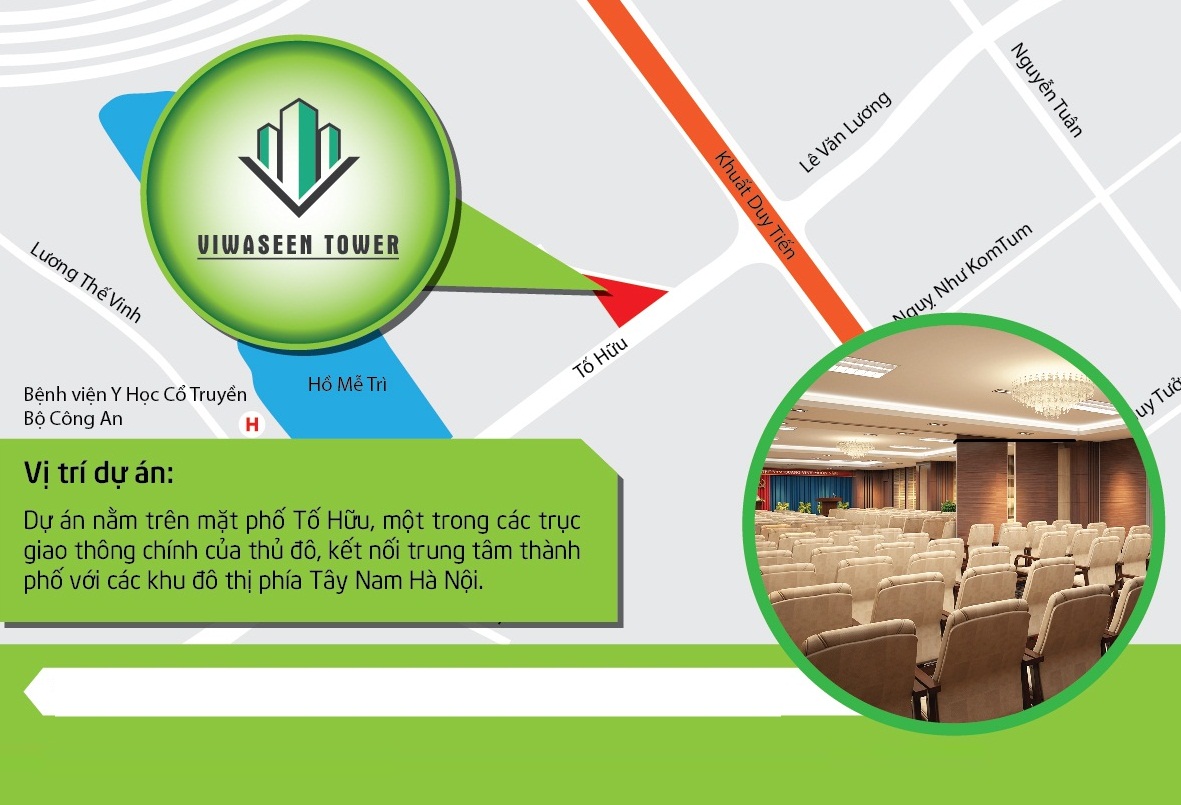 • Viwaseen Tower là dự án nhà ở kết hợp văn phòng và dịch vụ thương mại cao cấp, đầu tư bởi Tổng công ty Nước và Môi trường Viwaseen (Tổng công ty Viwaseen). Dự án có vị trí đắc địa nằm ngay mặt phố Tố Hữu, kết nối thuận tiện đến trung tâm thành phố và chuỗi tiện ích, dịch vụ sầm uất của Hà Nội.