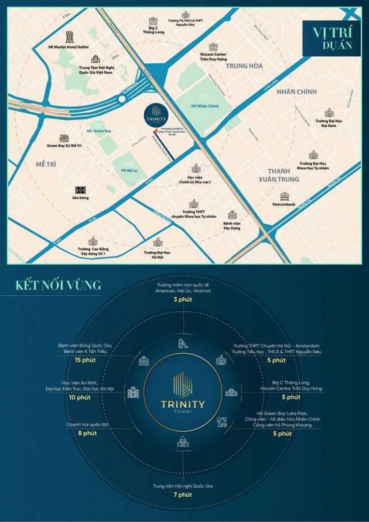 • Bên cạnh đó, với lợi thế Trên trục giao lộ đường quy hoạch nối liền Tố Hữu và đường Hồ Mễ Trì. Dự án Trinity Tower thừa hưởng trọn vẹn cảnh quan thoáng đạt, khí hậu trong lành từ những khu vườn cây, hồ nước, mang đến một cuộc sống tràn đầ năng lượng tới những chủ sở hữu tương lai thời thượng.