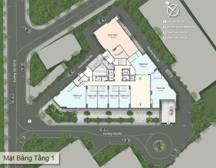 – Tầng 1-3: 07 lô SH khối đế thông 3 tầng mặt tiền 3,36m/lô, có 1 lô nhà trẻ