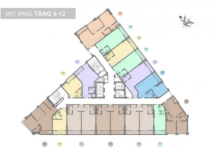 – Tầng 5-12: 120 căn hộ VP có lưu trú, dtich 27-35-44-69m2 (50 năm)