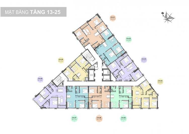 – Tầng 13-25: 117 căn hộ chung cư: 65,8 – 67 – 83 – 96m2 (lâu dài)