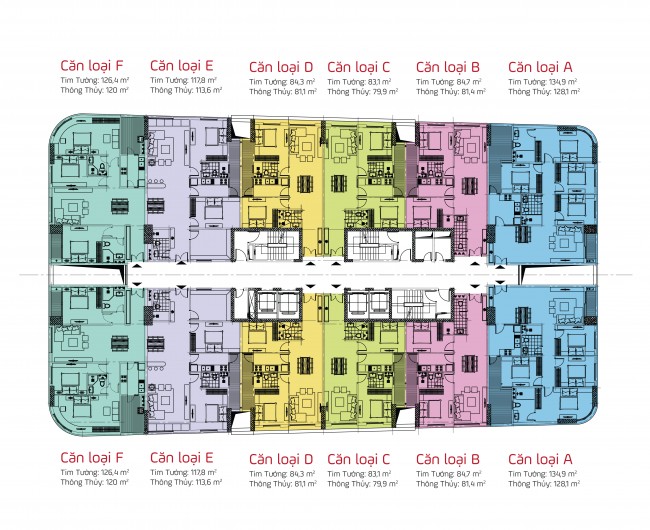 • Khu vực đỗ xe của tòa nhà được bố trí hoàn toàn dưới tầng hầm có diện tích 1870m2 và khu đỗ xe của toàn khu bên cạnh. Tầng 01 của tòa nhà được sử dụng hoàn toàn cho các mục đích công cộng (như sảnh –hành lang cho khu căn hộ) và các khu siêu thị, cửa hàng phục vụ cho nhu cầu của các hộ gia đình. Từ tầng 02 đến tầng 25 được sử dụng cho các căn hộ. Mỗi tầng có 10 căn hộ với diện tích từ 86m2 đến 142m2.
