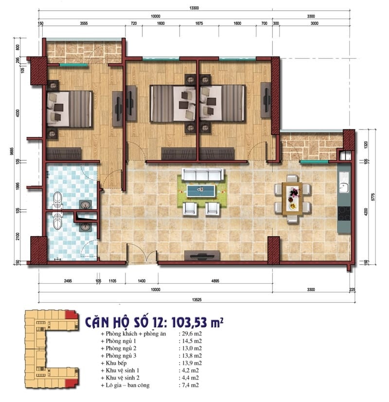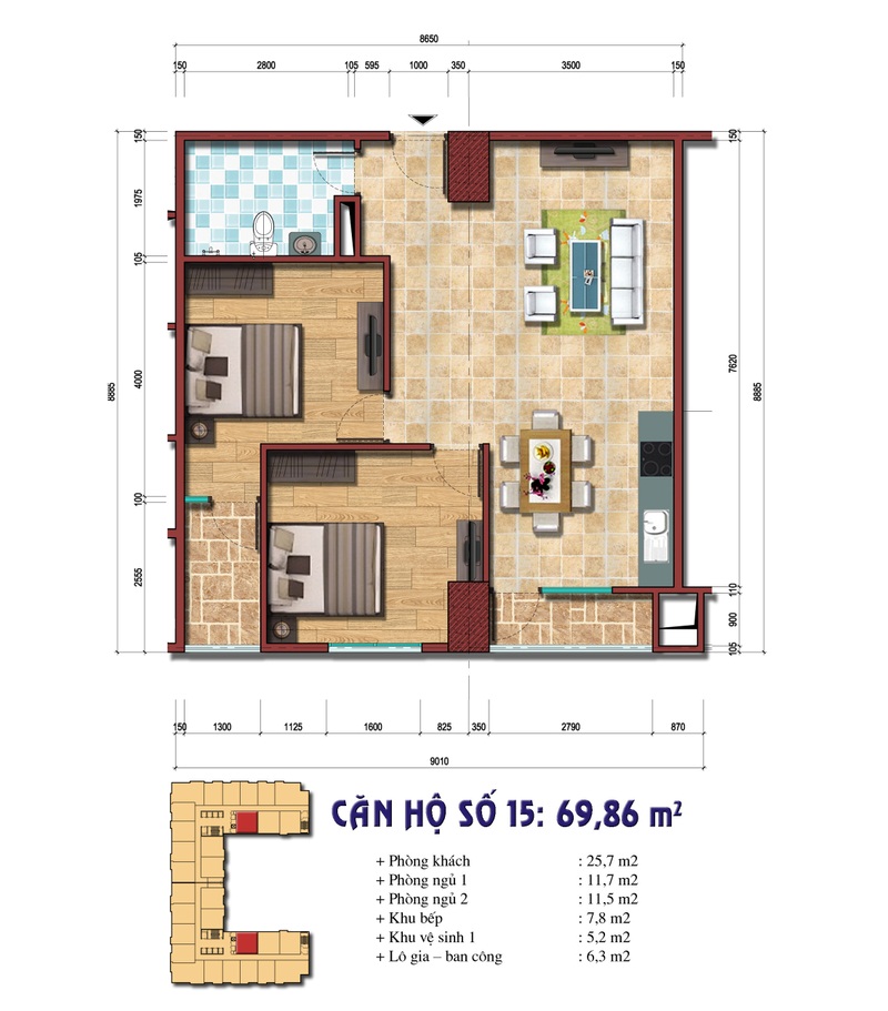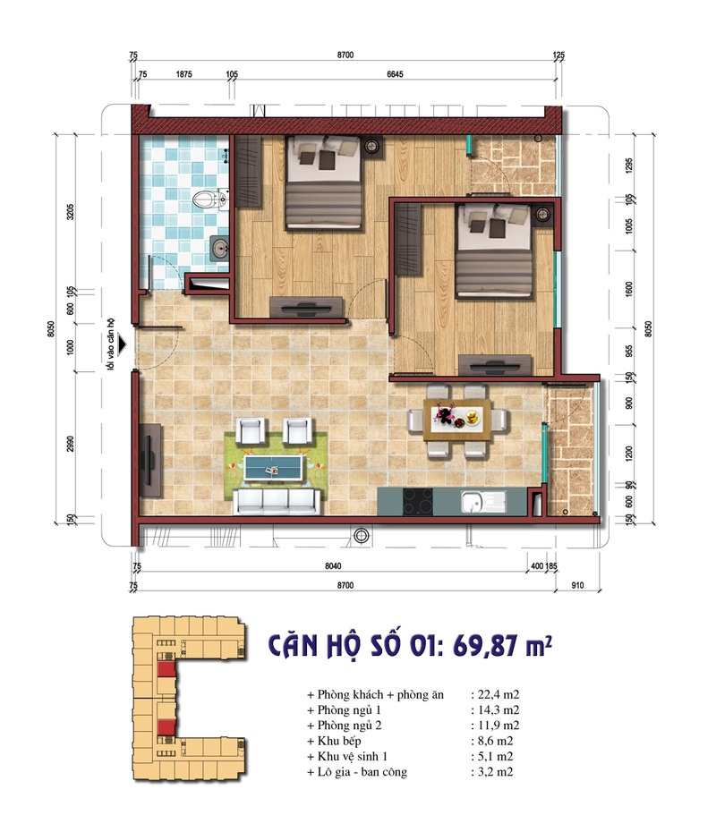 • Mỗi căn hộ tại Đại Kim Building được thiết kế phổ biến từ 2 - 3 phòng ngủ, được thiết kế ấn tượng cùng với nội thất sang trọng của những thương hiệu nổi tiếng trong nước cũng như nhập ngoại mang đến phong cách sống thượng lưu cho gia chủ. Đặc biệt, với thiết kế căn hộ như vậy sẽ tạo ra không gian sinh hoạt đầm ấm, yêu thương ngập tràn ngôi nhà bạn.
