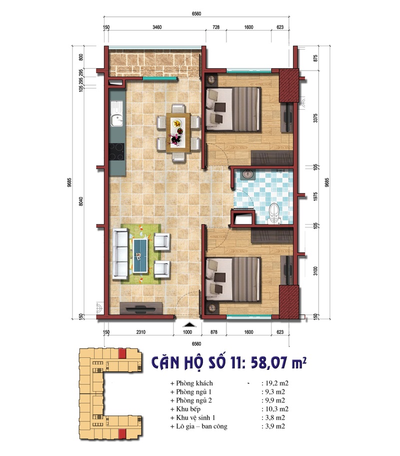 • Tổng diện tích sàn xây dựng: 65.272,7 m2.