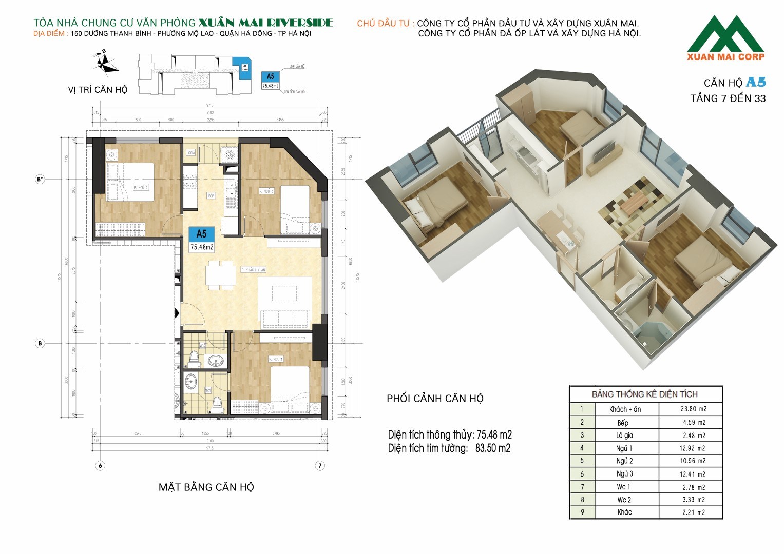 • Tên dự án: Chung cư Xuân Mai Riverside