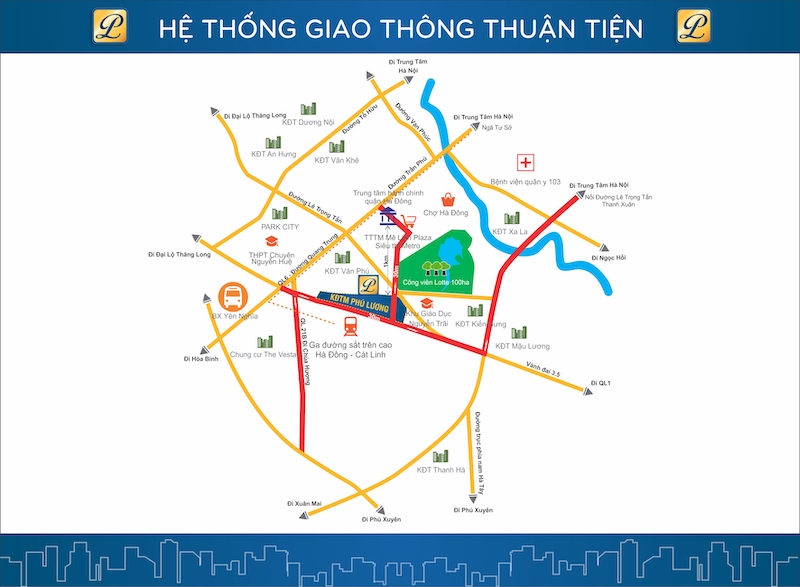 - Phía Bắc: Giáp khu đô thị mới Văn Phú và tuyến đường vành đai 3,5.