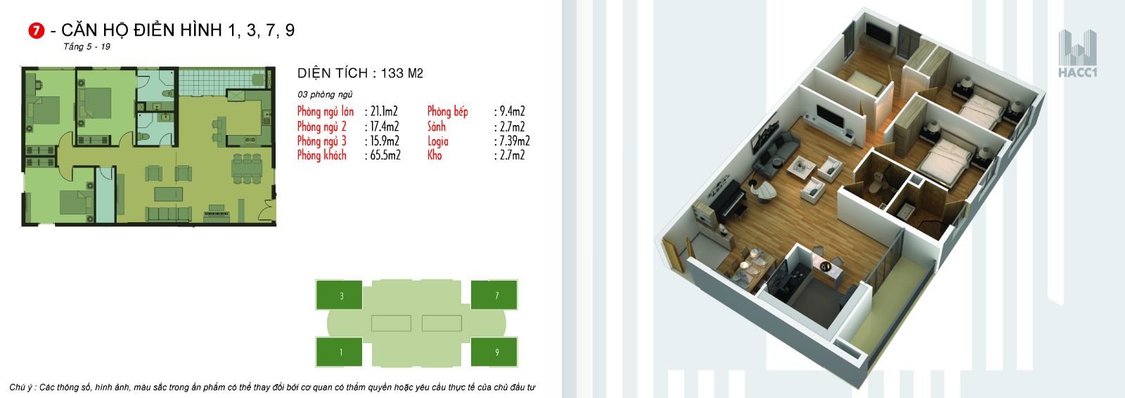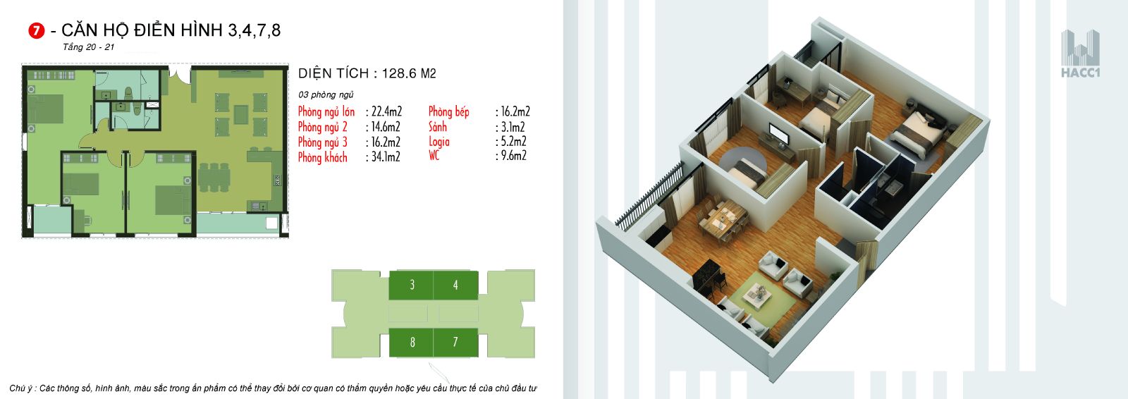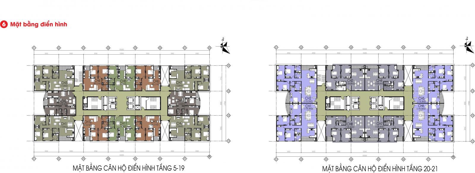 - Tầng 20 và 21 là penhouse với các căn hộ có diện tích lớn: 128,6m2; 178,3m2