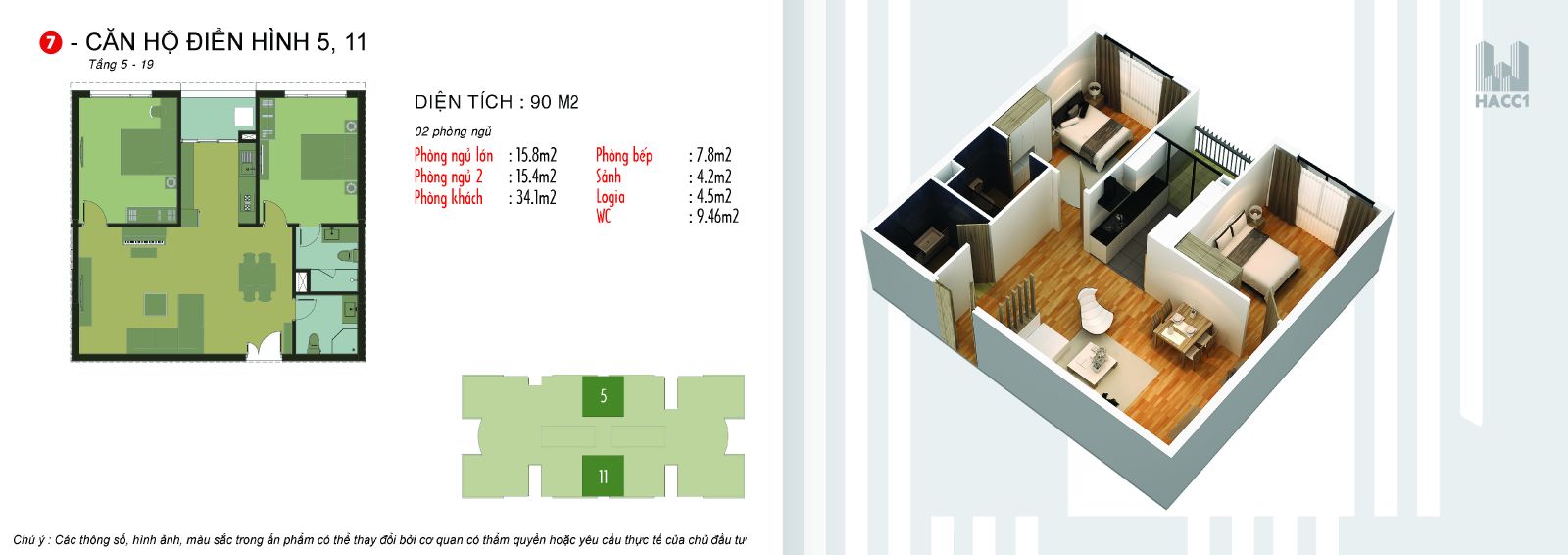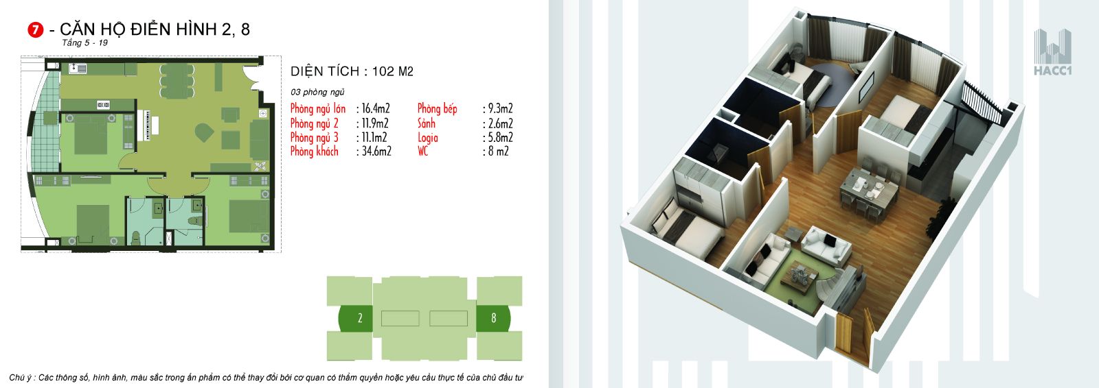 - Từ tầng 5-19 bố trí 12 căn/sàn với các loại diện tích: 83,2m2; 90m2; 102,2m2; 133m2