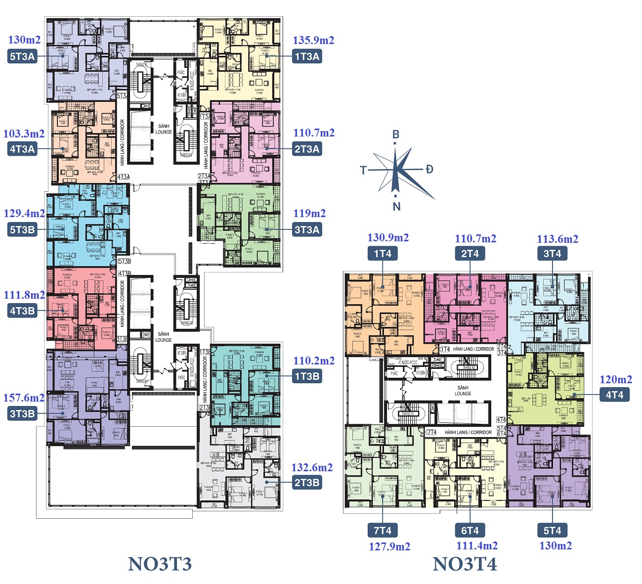 • Căn hộ tại N03 T3 – T4 được thiết kế 3 Phòng ngủ có diện tích từ 103m2 – 157m2, với 6 căn hộ / 3 thang máy. Được thiết kế bởi DPA Singapore đảm bảo ánh sáng tự nhiên và view cảnh quan cho all các phòng