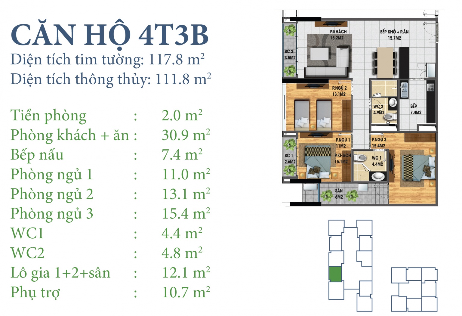 • Tổng số căn hộ 340 căn hộ với diện tích từ 111.8m2 đến 156,7m2