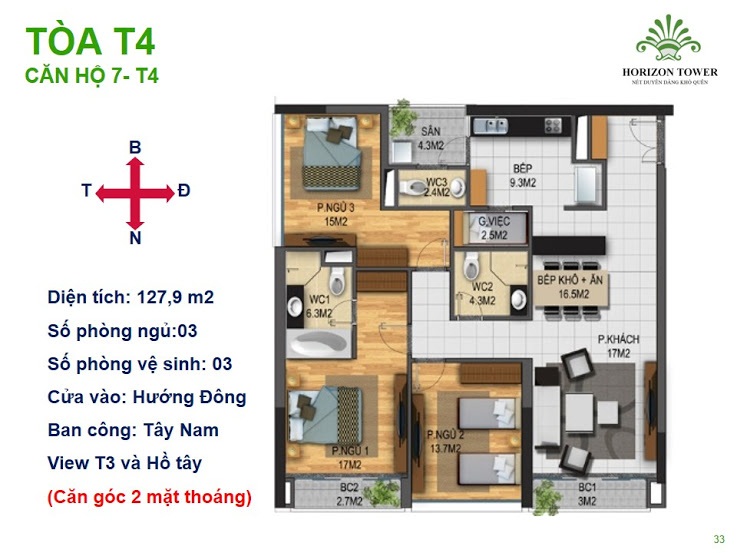 • Với những thiết kế hiện đại, áp dụng các tiêu chuẩn kiểu mẫu cho những căn hộ tại Chung cư Horizon Tower người mua nhà có thể hoàn toàn yên tâm về không gian sống, việc vận dụng các yếu tố phong thuỷ vào trong từng thiết kế với chủ đạo các căn hộ đều lấy cảm hừng “Chạm tay vào Nắng và Gió” kết hợp tinh tế với thiên nhiên, mang thiên nhiên vào từng căn hộ nhưng vẫn giữ được sự sang trọng và đẳng cấp.