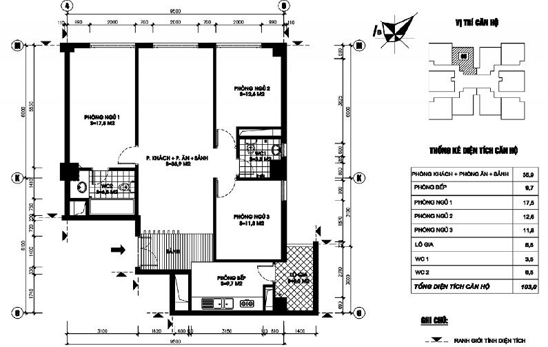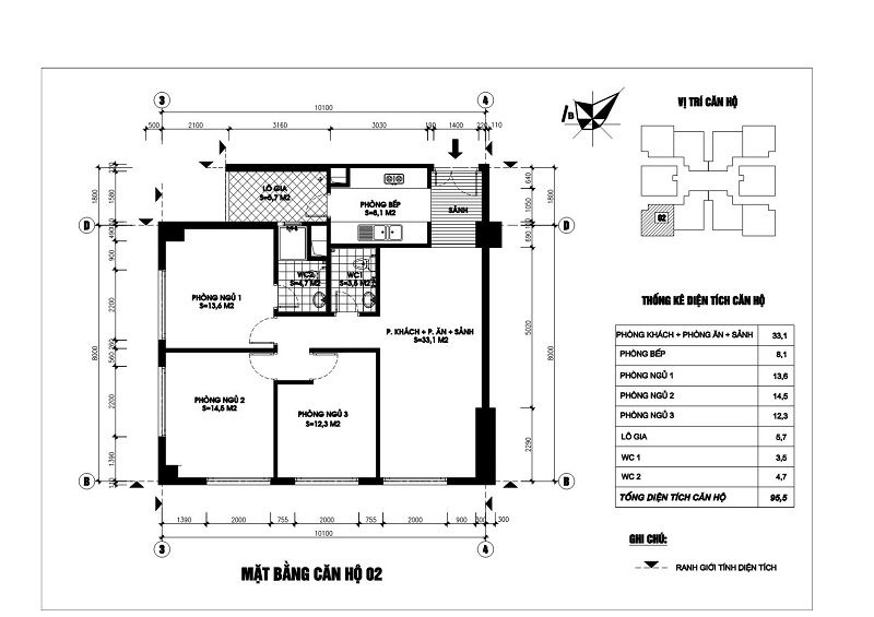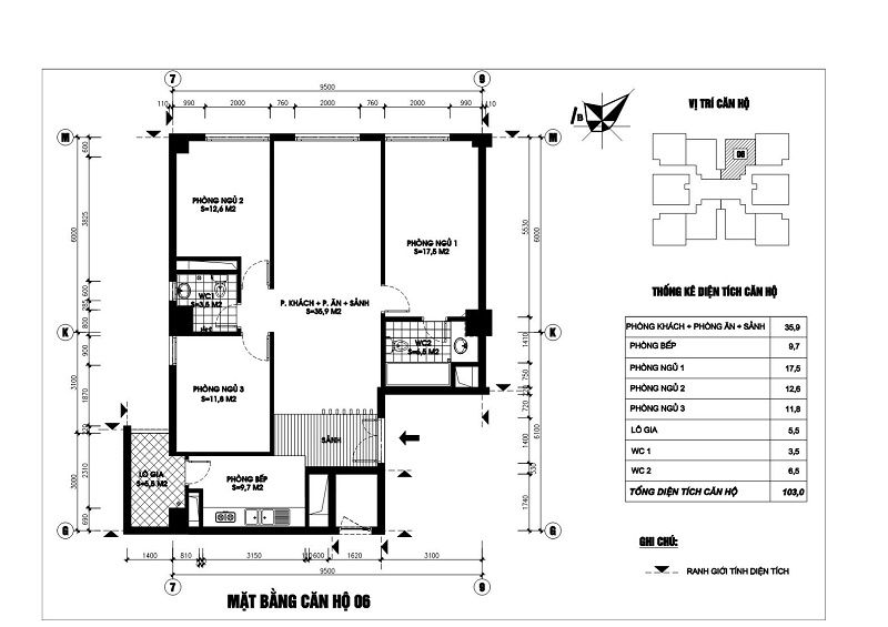 • Diện tích căn hộ/tầng: 1.002m2