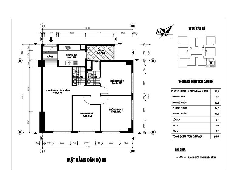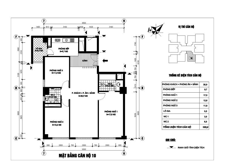 • Bố trí căn hộ: 10 căn/tầng
