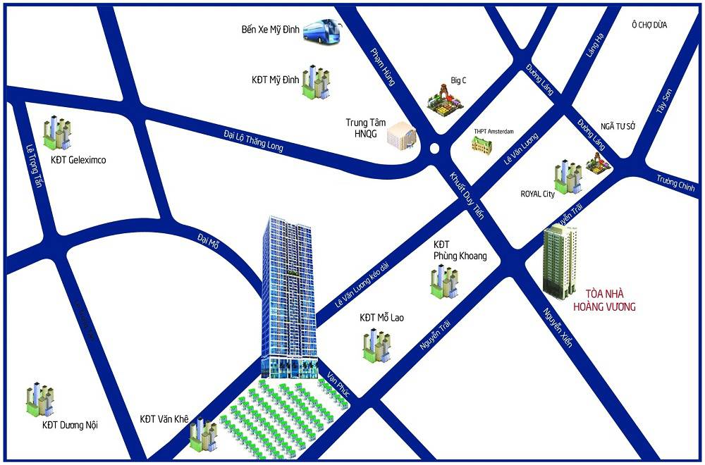 • Từ Chung cư Hanoi Landmark 51 ta dễ dàng lưu thông vào trung tâm thành phố Hà Nội với 2 con đường đẹp nhất phía tây Hà Nội: Lê Văn Lương kéo dài, Quang Trung Nguyễn Trãi