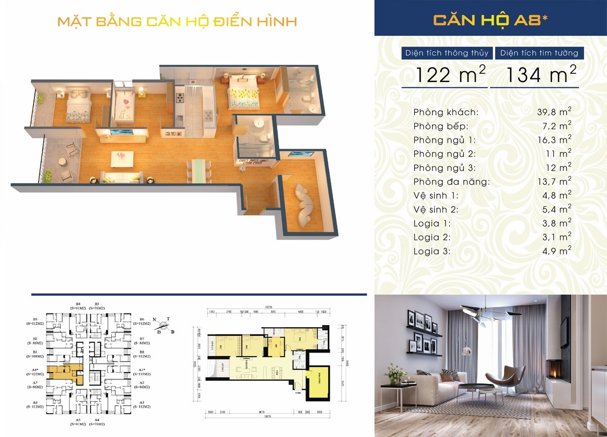 • Thiết kế 8 thang máy và 4 thang bộ phục vụ 1 sàn gồm 16 căn hộ. Hệ thống máy phát điện luôn sẵn sàng, camera giám sát 24/24 đảm bảo an ninh tốt nhất cho các cư dân.