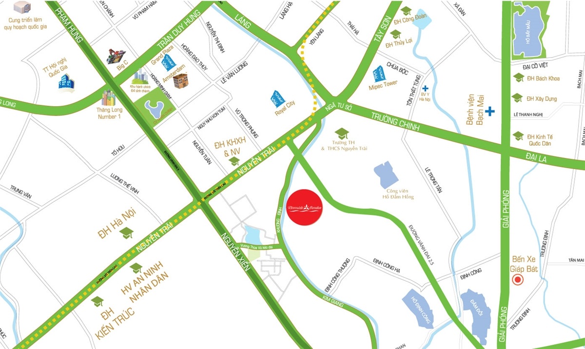 • Riverside Garden sở hữu vị trí đắc địa với ưu thế mặt tiền hướng thủy. Tọa lạc tại 349 Vũ Tông Phan, Thanh Xuân, Hà Nội, dự án có lợi thế chiến lược về kết nối giao thông. Chỉ mất 03 phút để đến trục giao thông Ngã tư sở, tuyến đường sắt trên cao hay tiếp cận tới ngã tư Nguyễn Trãi - Nguyễn Xiển - trục giao thông 04 tầng hiện đại bậc nhất thành phố.
