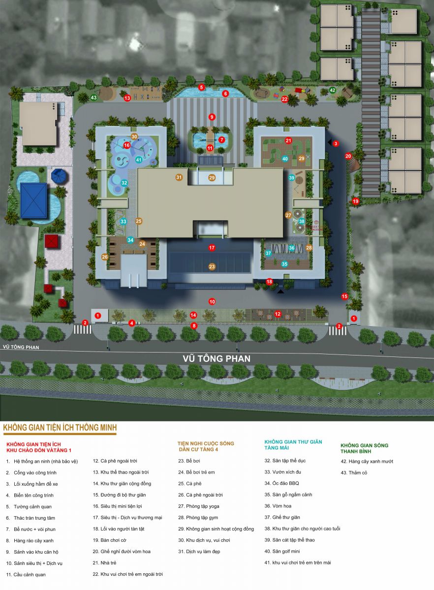 • Kiến tạo đến 43 tiện ích xanh, chủ đầu tư Videc mong muốn đây sẽ là nơi sống lý tưởng của gia đình Việt. Hệ thống cây xanh được phủ khắp từ khuôn viên dự án, khối đế đến dịch vụ bên trong và tầng mái tòa nhà tạo thành “lá phổi xanh” thanh lọc và cung cấp không khí trong lành cho toàn bộ cư dân.
