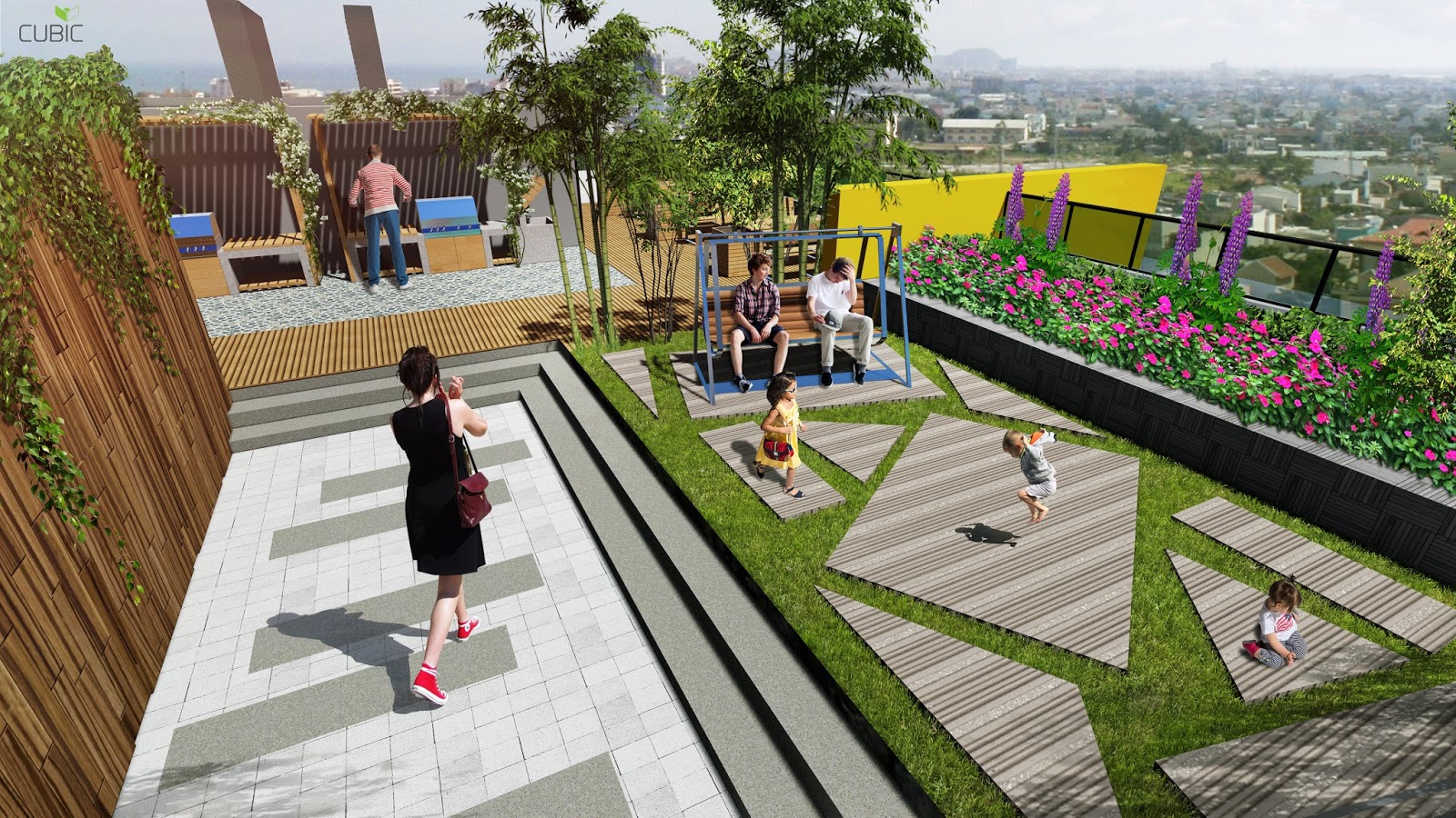 • Ở khu vực tầng mái, các kiến trúc sư đã khéo léo sắp đặt một không gian xanh nghỉ dưỡng và thưởng thức ẩm thực đẳng cấp với vòm hoa, vườn xích đu, ghế thư giãn, ốc đảo BBQ, sân Golf mini và khu vui chơi trẻ em trên mái. Từ đây, cư dân có thể nhâm nhi tách cà phê sáng tận hưởng không khí trong lành hay quây quần bên bữa tiệc BBQ ấm cúng, cùng nhau ngắm thành phố lung linh lúc đêm về.