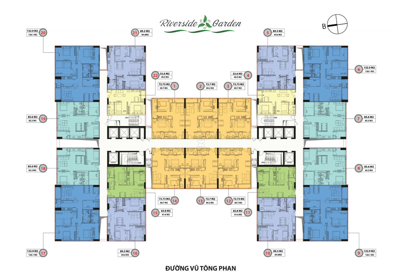 • Căn hộ cao cấp tại dự án Riverside Garden có diện tích từ 65m2 đến 150m2, đáp ứng tối đa nhu cầu đa dạng của người mua nhà. Mẫu căn hộ được thiết kế theo 2 phong cách hiện đại và tân cổ điển. Căn hộ theo phong cách hiện đại sẽ đặc biệt phù hợp với nhu cầu về môi trường sống thoáng đãng, đơn giản mà tiện nghi. Mẫu căn hộ này được các gia đình trẻ hay các gia đình 02 thế hệ yêu thích. Kiểu căn hộ cổ điển & trang nhã sẽ làm hài lòng những khách hàng trung lưu, các gia đình 02 hay nhiều thế hệ bằng những tiện nghi phục vụ cuộc sống hàng ngày của chủ nhân.