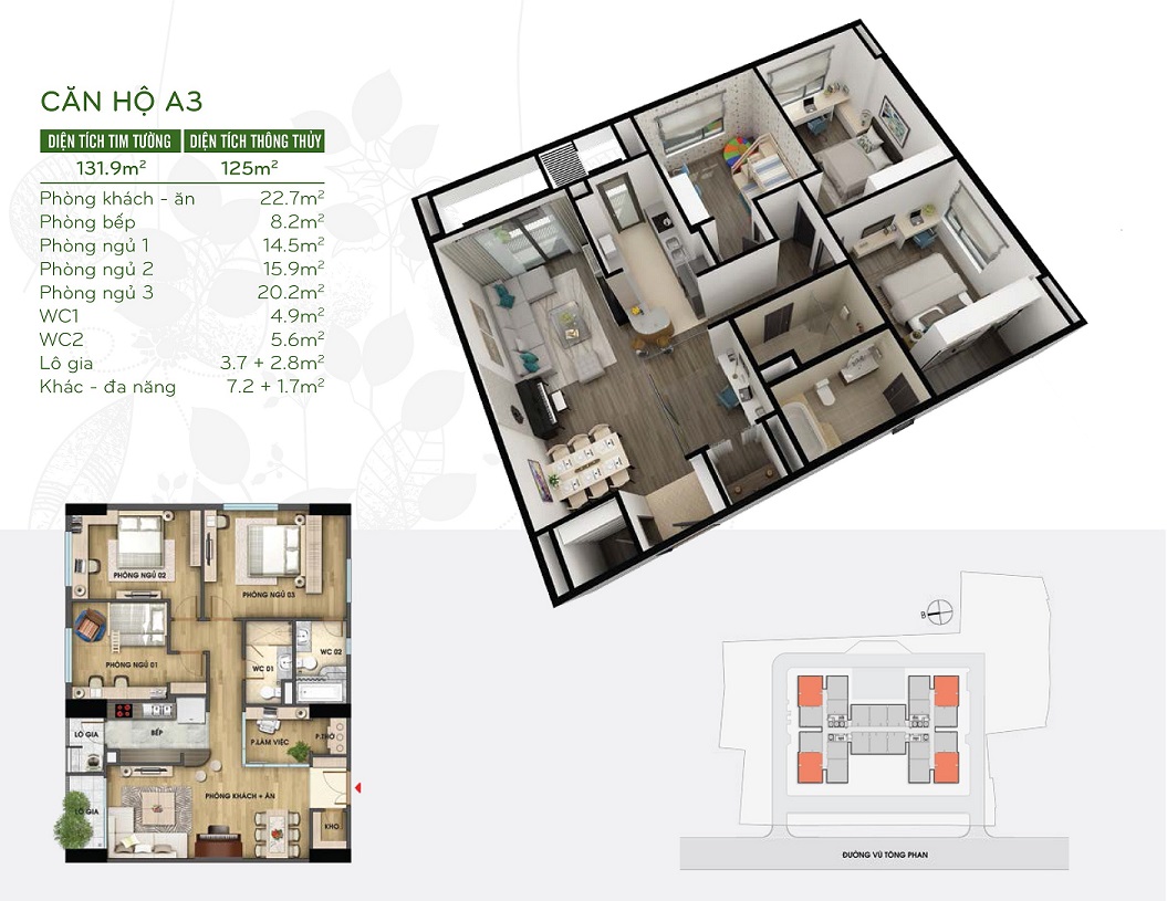 • Diện tích xây dựng nhà ở biệt thự khoảng: 135 m2;