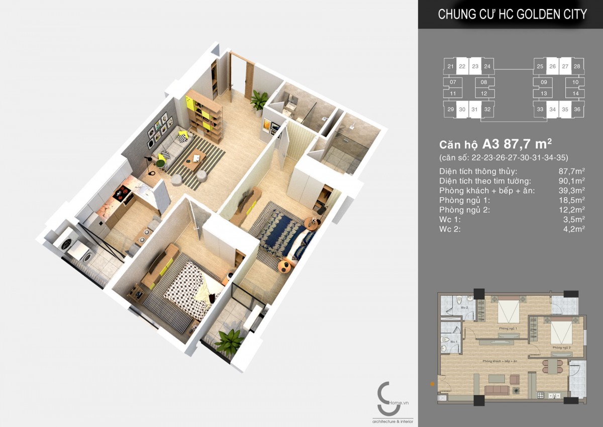 • Với những thiết kế hiện đại, áp dụng các tiêu chuẩn kiểu mẫu cho những căn hộ tại Chung cư HC Golden City người mua nhà có thể hoàn toàn yên tâm về không gian sống, việc vận dụng các yếu tố phong thuỷ vào trong từng thiết kế với chủ đạo các căn hộ đều lấy cảm hừng “Chạm tay vào Nắng và Gió” kết hợp tinh tế với thiên nhiên, mang thiên nhiên vào từng căn hộ nhưng vẫn giữ được sự sang trọng và đẳng cấp.