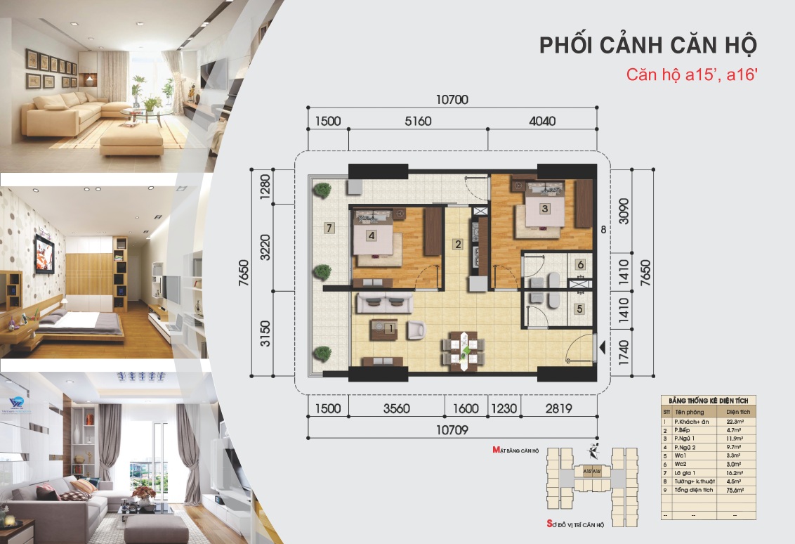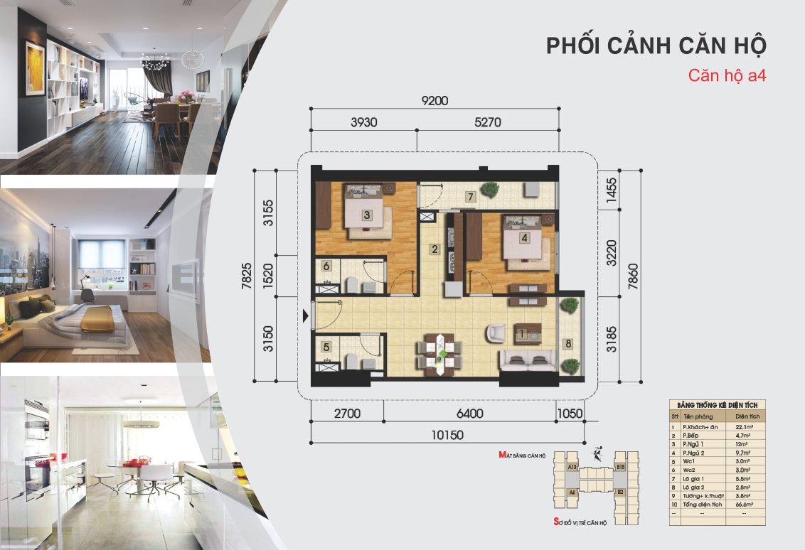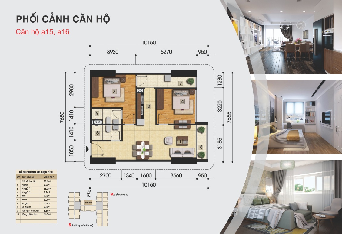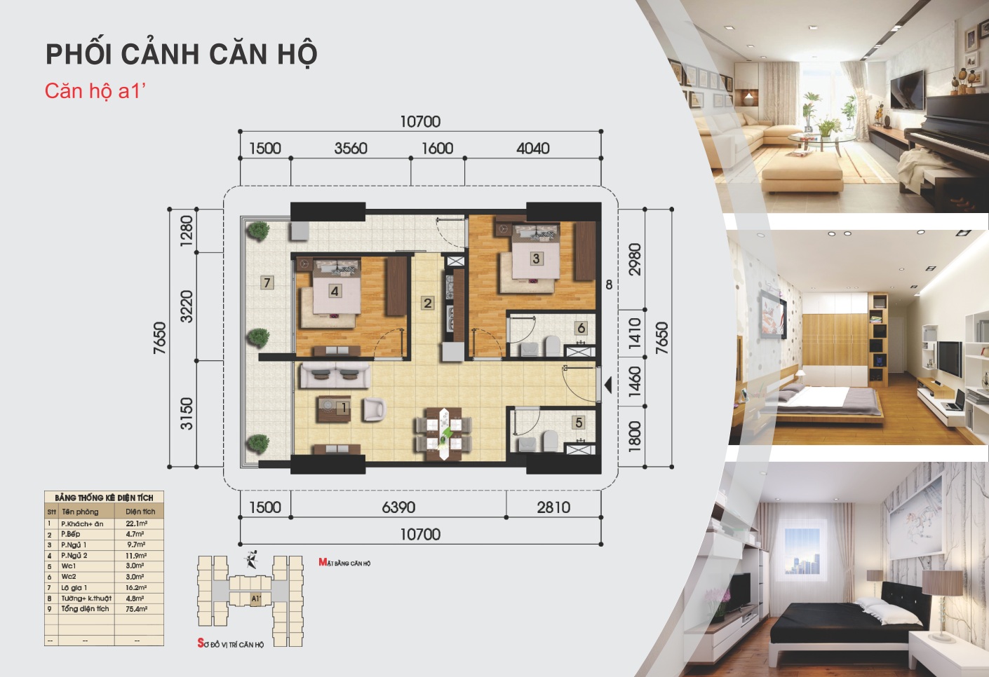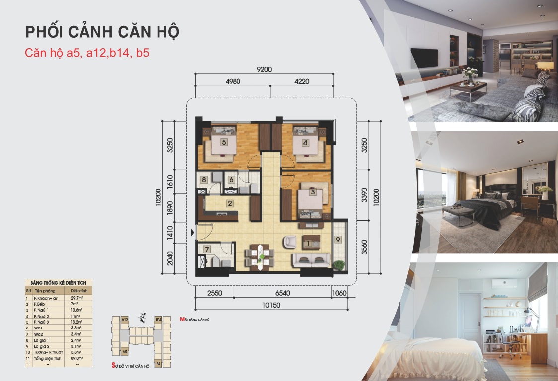 • Diện tích căn hộ: từ 65,5m2 đến 91,3m2.