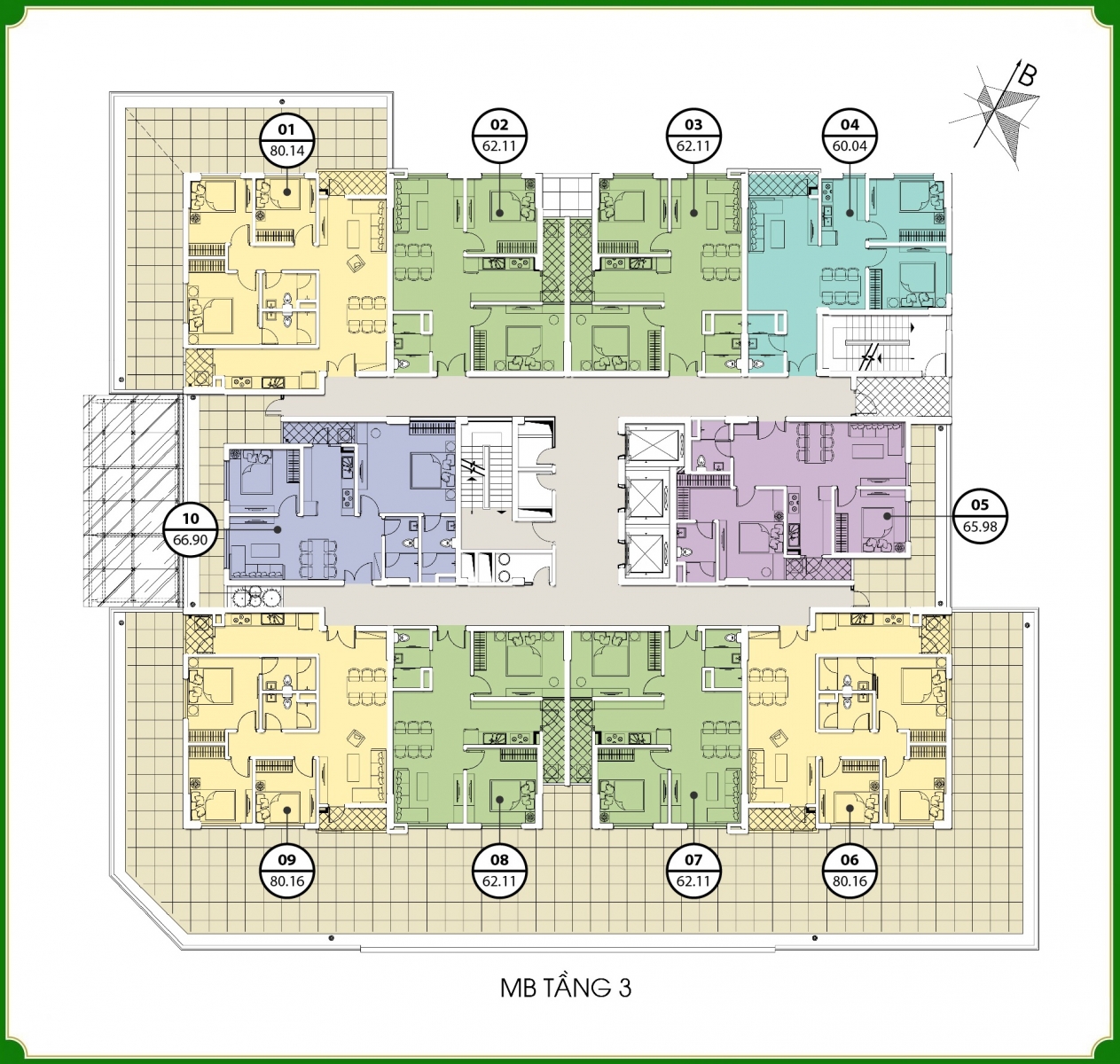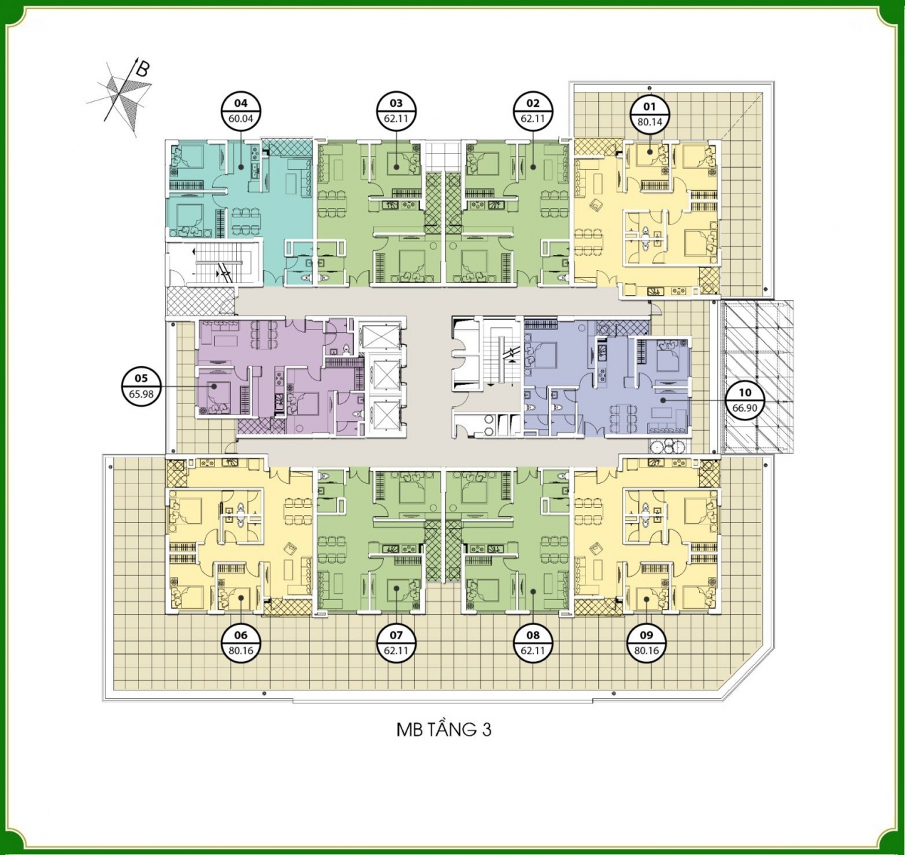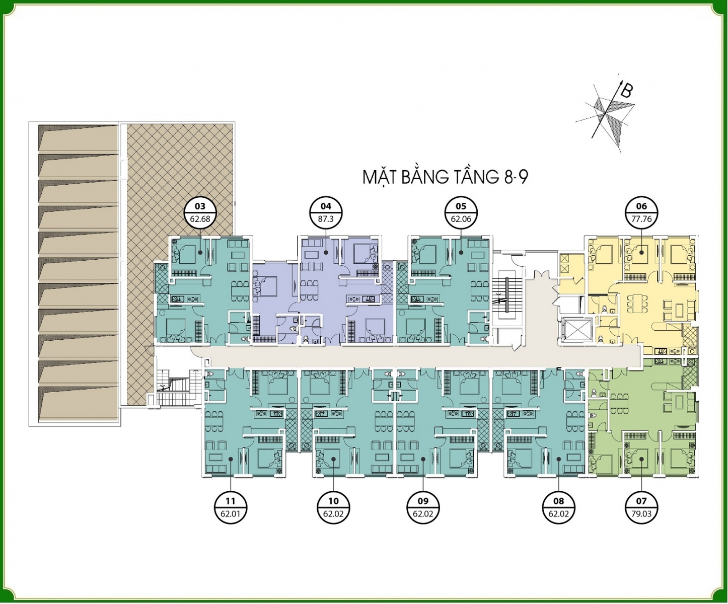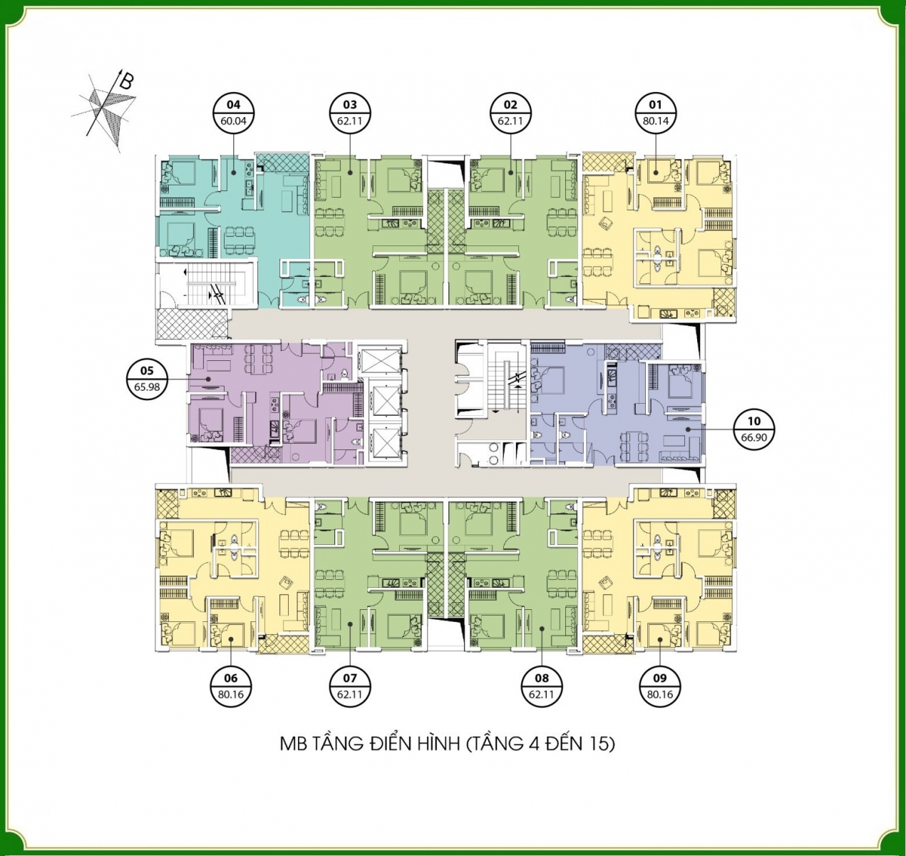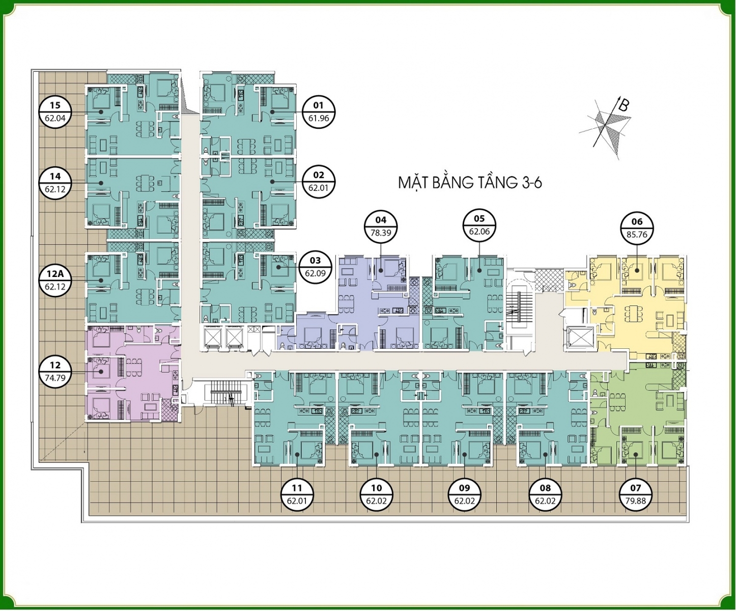 • Quy mô dự án: Gồm ba tòa A, B, C cao 15 tầng và 9 tầng, 01 tầng hầm