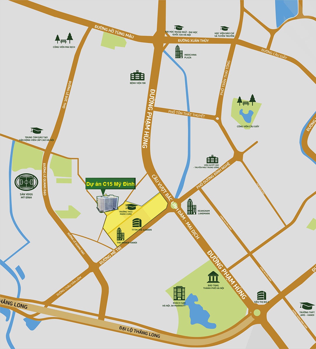 • Nằm trong quy hoạch tổng thể của Công Viên văn hóa thể thao Tây Nam Hà Nội, trung tâm hành chính mới của thủ đô, trên trục giao thông Mễ trì – Phạm Hùng, nơi kết nối những công trình cao cấp và tiêu biểu bậc nhất của Thành phố, C15 Bộ Công An có vị trí đắc địa vì thế giao thông đi lại thuận tiện và kết nối nhanh chóng với Trung Tâm.