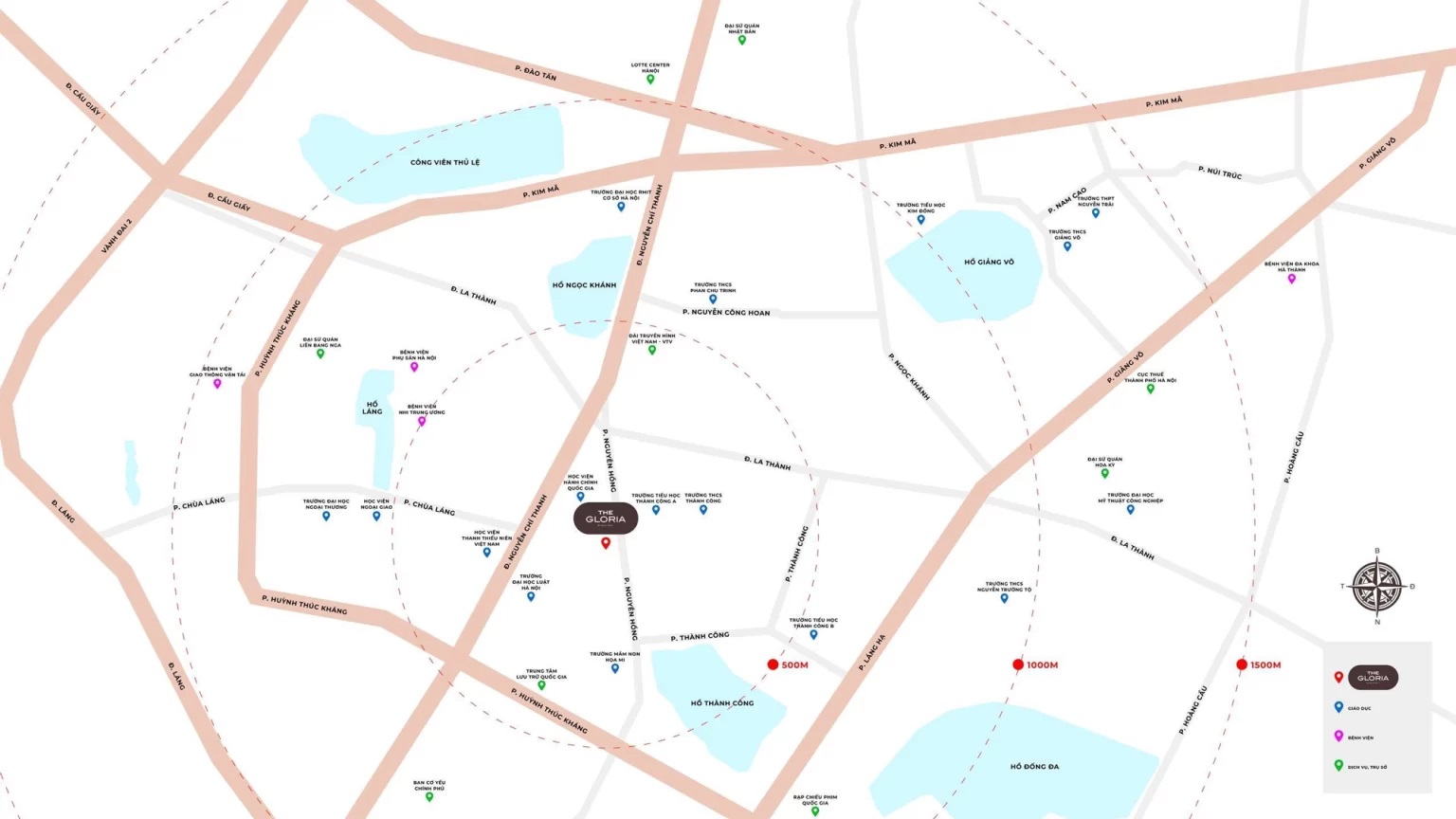 • The Gloria tọa lạc tại số 8 Nguyên Hồng, phường Láng Hạ, quận Đống Đa, Hà Nội. Gloria Nguyên Hồng nằm ngay giữa trung tâm ngoại giao và giáo dục của thành phố, tiếp giáp với quận Ba Đình, khu đô thị phía Tây – trung tâm mới của thủ đô Hà Nội. Từ dự án đi đến các khu vực nội thành và ngoại thành đều hết sức thuận tiện nhờ các trục giao thông mới hiện đại kết nối linh hoạt với đường vành đai 2, 3 và hệ thống đường sắt đô thị trong tương lai.