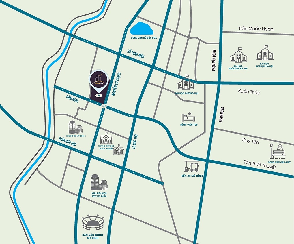 • Điều đáng ao ước tiếp theo: chung cư MBLand Golden Field sở hữu 2 mặt tiền đường: Hàm Nghi, Nguyễn Cơ Thạch – 2 tuyến đường đắt giá bậc nhất Mỹ Đình, giúp kết nối với trung tâm cũng như những khu vực ngoại thành.