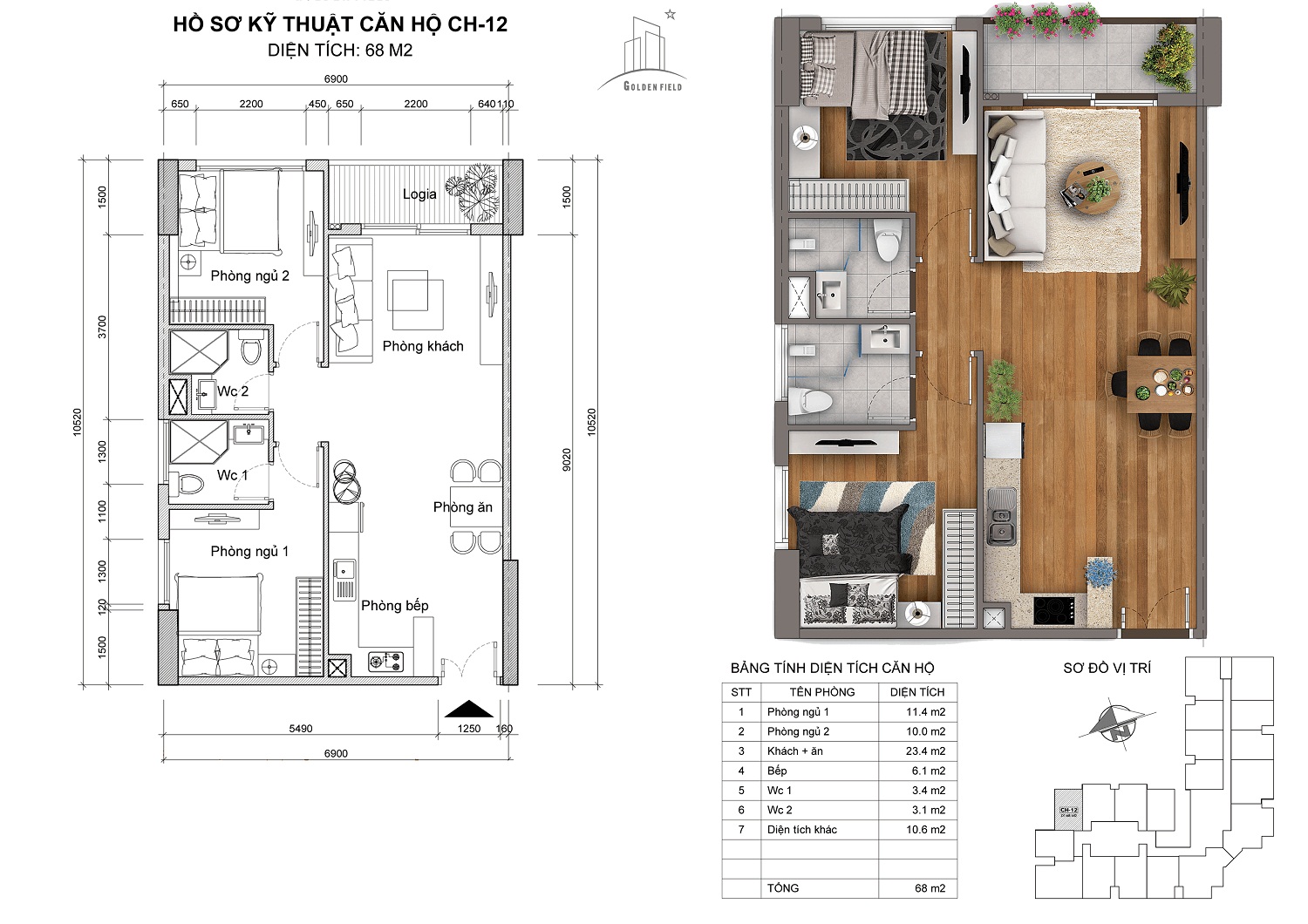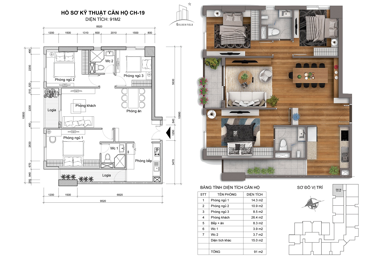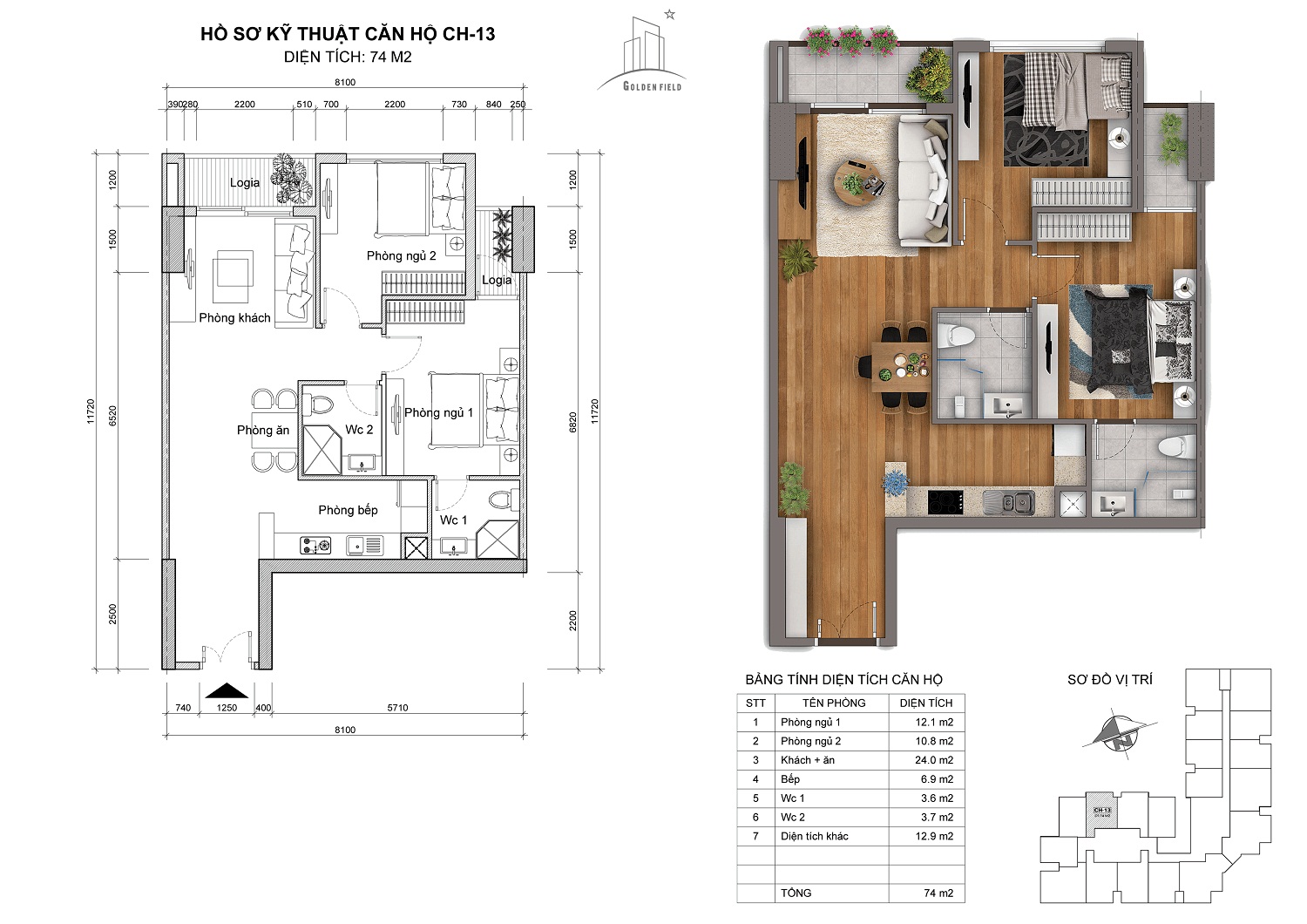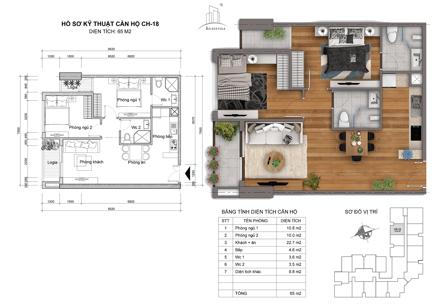 • Đúng như chia sẻ của chủ đầu tư, khu căn hộ Golden Field được thiết kế rất thông minh, giúp tối ưu hóa diện tích cũng như công năng sử dụng của mỗi phòng. Hệ thống logia, vách kính, cửa sổ được bố trí một cách khoa học giúp cả căn hộ luôn thông thoáng, ngập tràn ánh sáng và gần gũi với thiên nhiên.