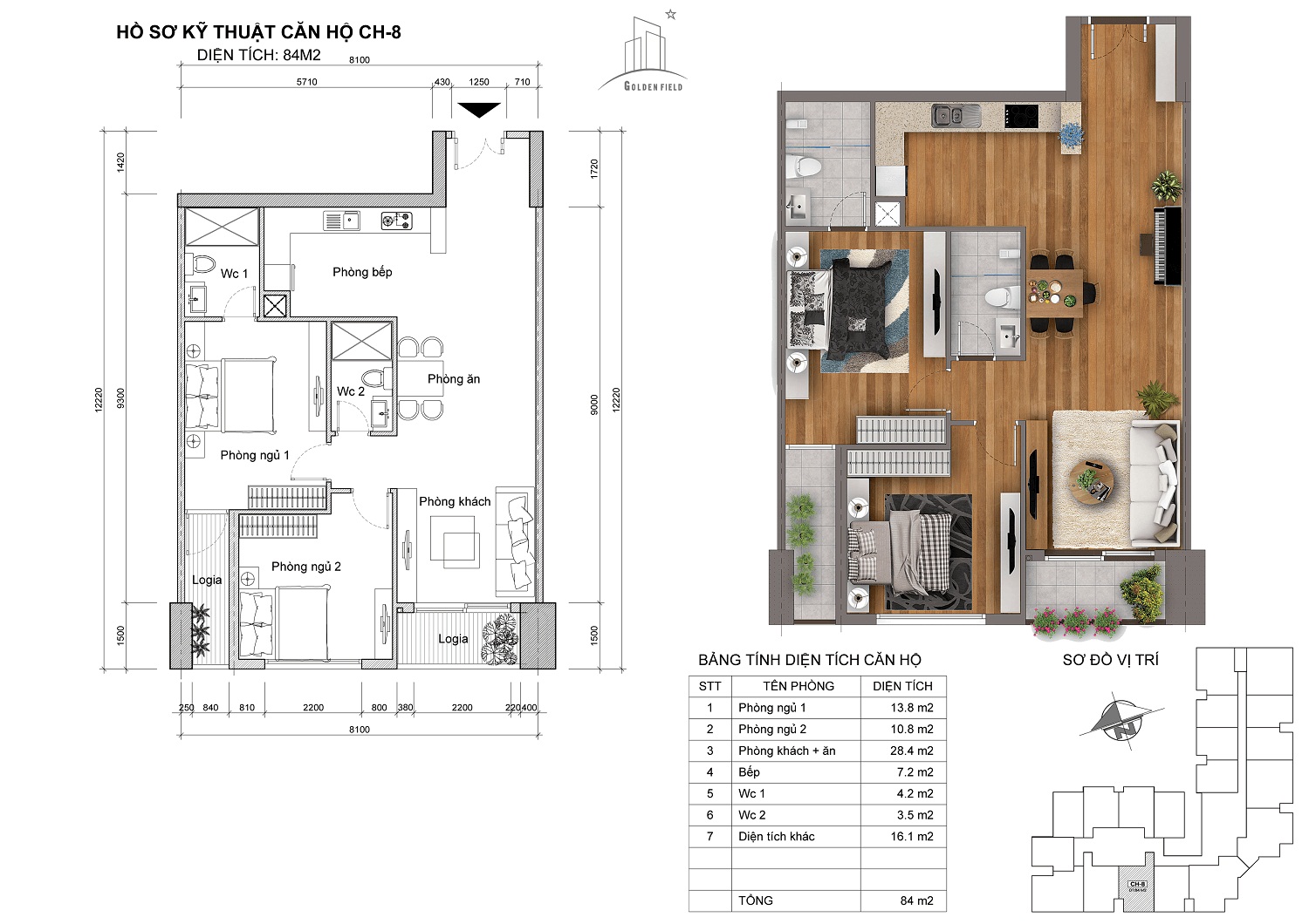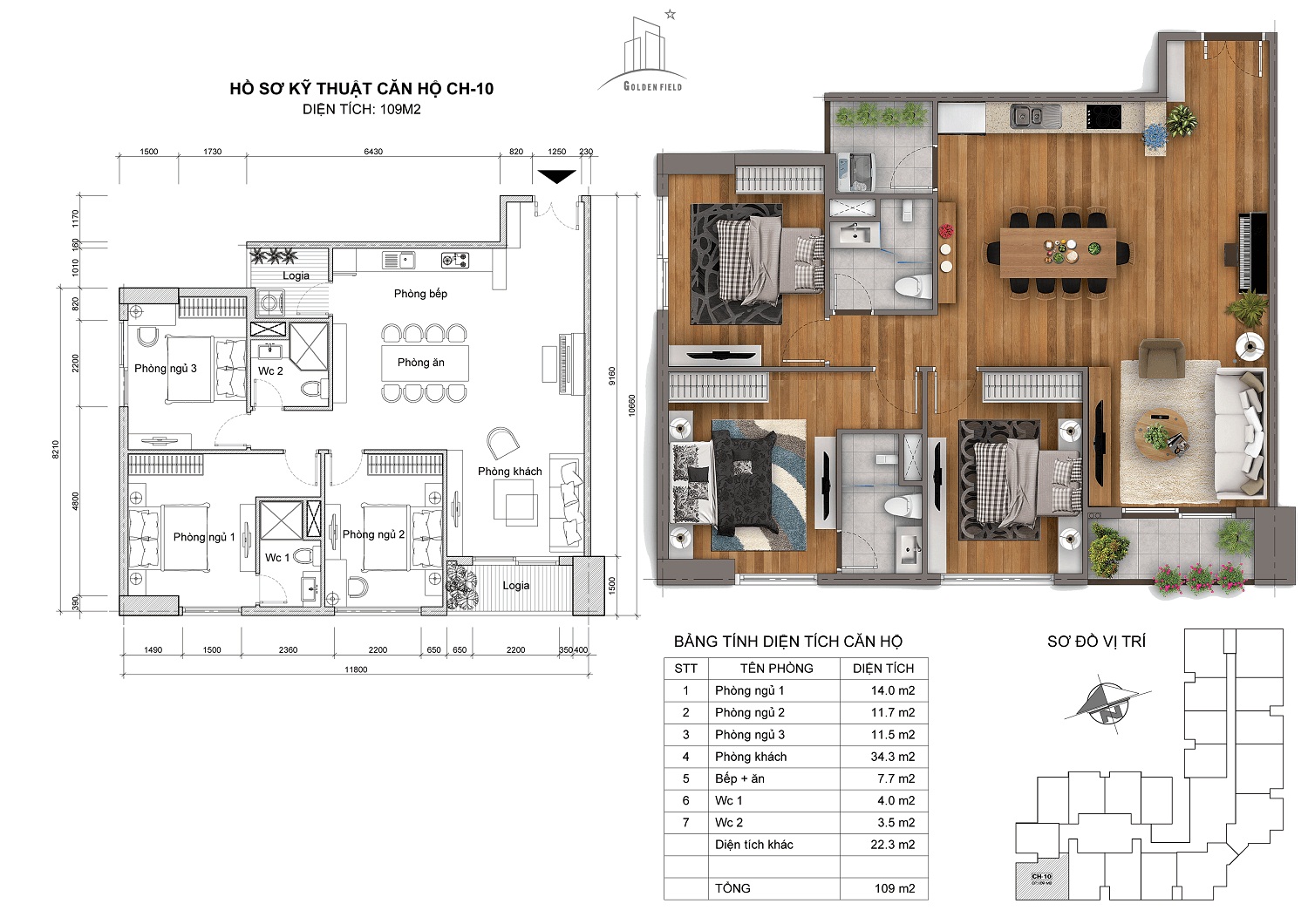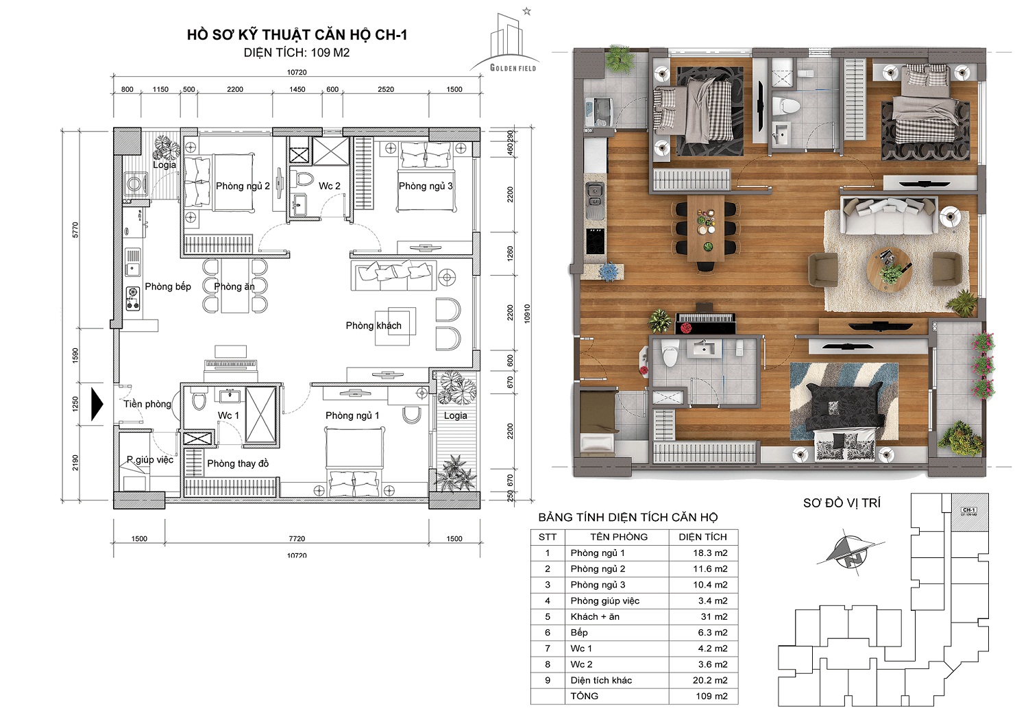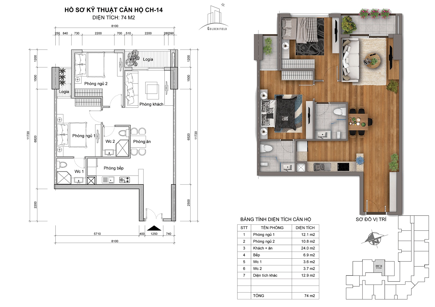 • Đúng như chia sẻ của chủ đầu tư, khu căn hộ Golden Field được thiết kế rất thông minh, giúp tối ưu hóa diện tích cũng như công năng sử dụng của mỗi phòng. Hệ thống logia, vách kính, cửa sổ được bố trí một cách khoa học giúp cả căn hộ luôn thông thoáng, ngập tràn ánh sáng và gần gũi với thiên nhiên.