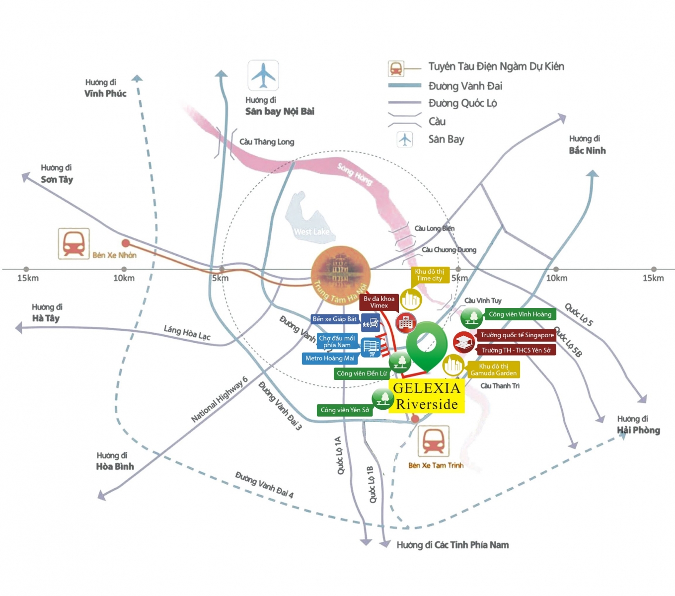 • Từ vị trí Gelexia Riverside dễ dàng di chuyển đi sân bay Nội Bài, dễ dàng kết nối với các tuyến vành đai 2,5 và vành đai 3. Cùng hệ thống các trục đường đi các tỉnh phía Nam, đi Hải Phòng, đi Bắc Ninh, Bắc Giang, lạng Sơn, đi Vĩnh Phúc, đi Hòa Bình.