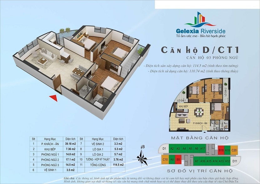 • Mặt bằng Chung cư Gelexia Riverside được thiết kế với xu hướng thời đại. Với mục tiêu mang đến cho khách hàng không gian sống mới lạ, mang phong cách riêng biệt. Nhưng vẫn đáp ứng đầy đủ nhu cầu sinh hoạt cho người dân. Điều đặc biệt trong thiết kế toàn bộ dự án luôn quan tâm đến phong thuỷ. Do phong thuỷ ảnh hưởng rất nhiều đến sức khoẻ cũng như tài vận của gia đình.