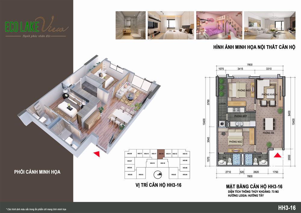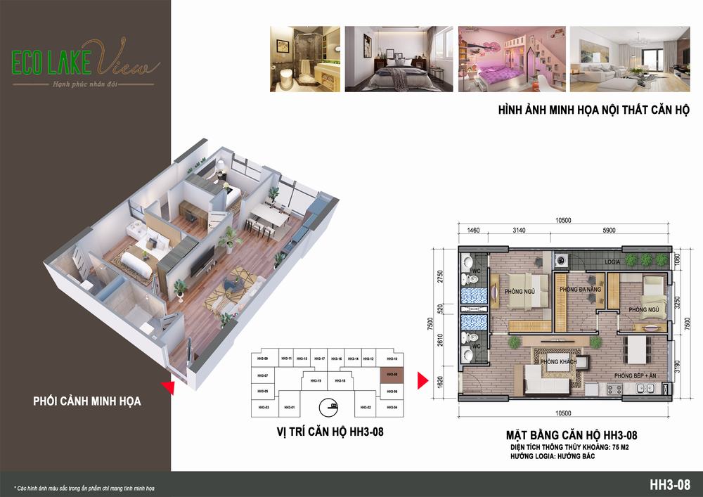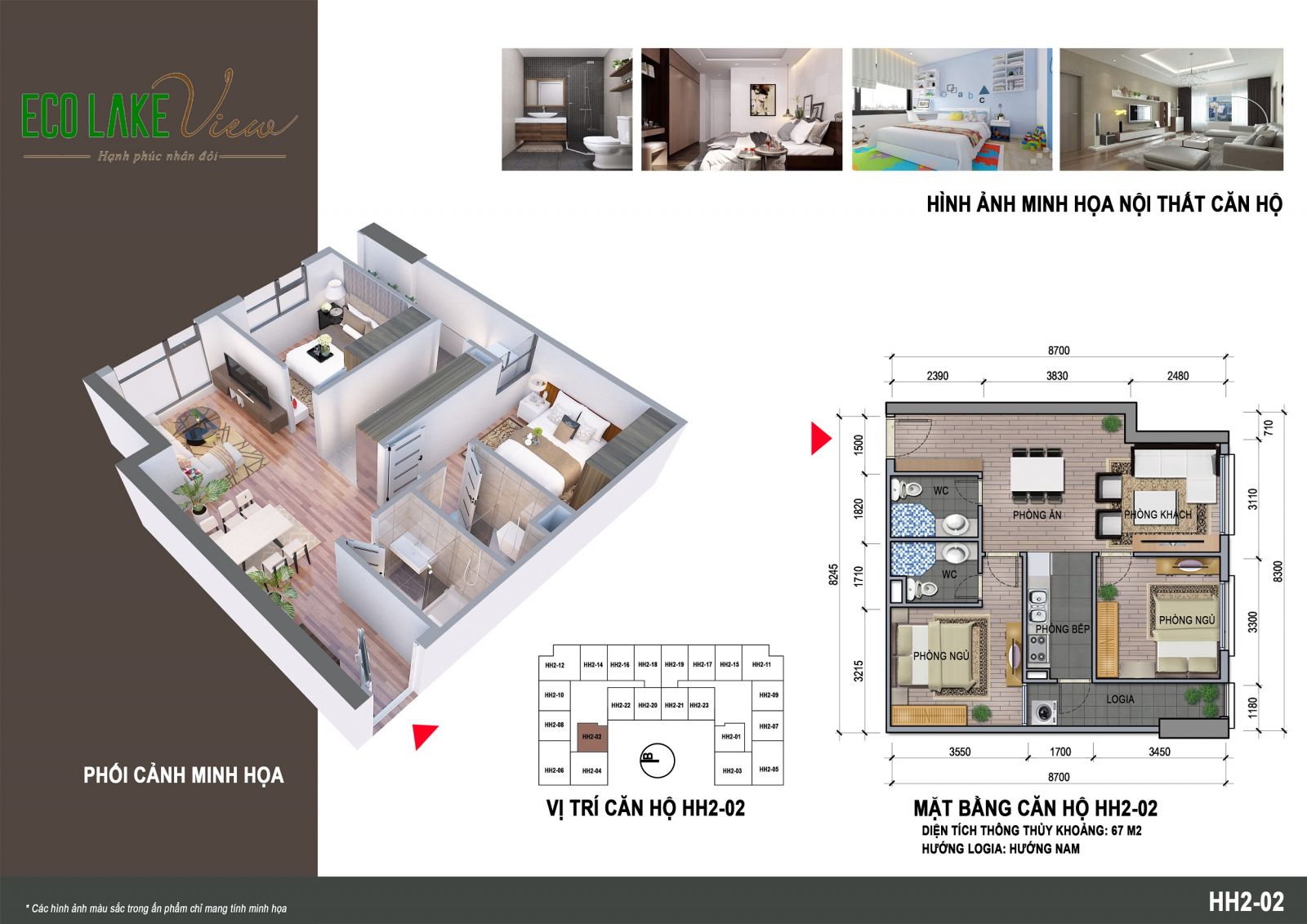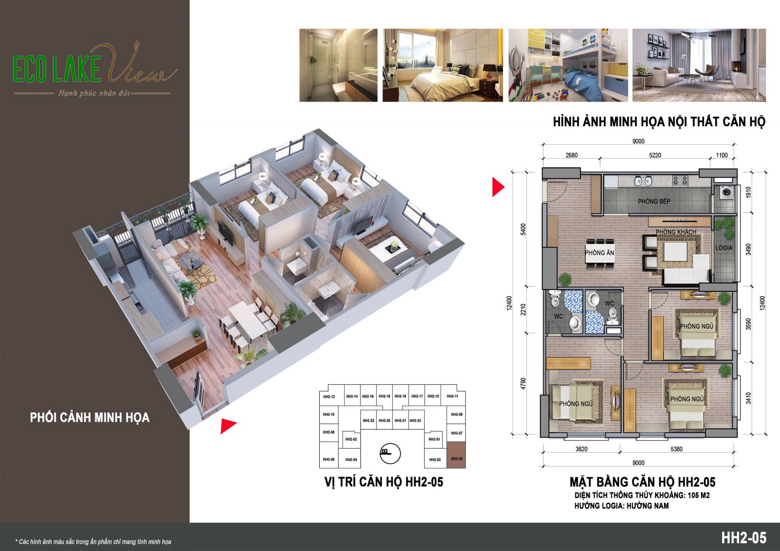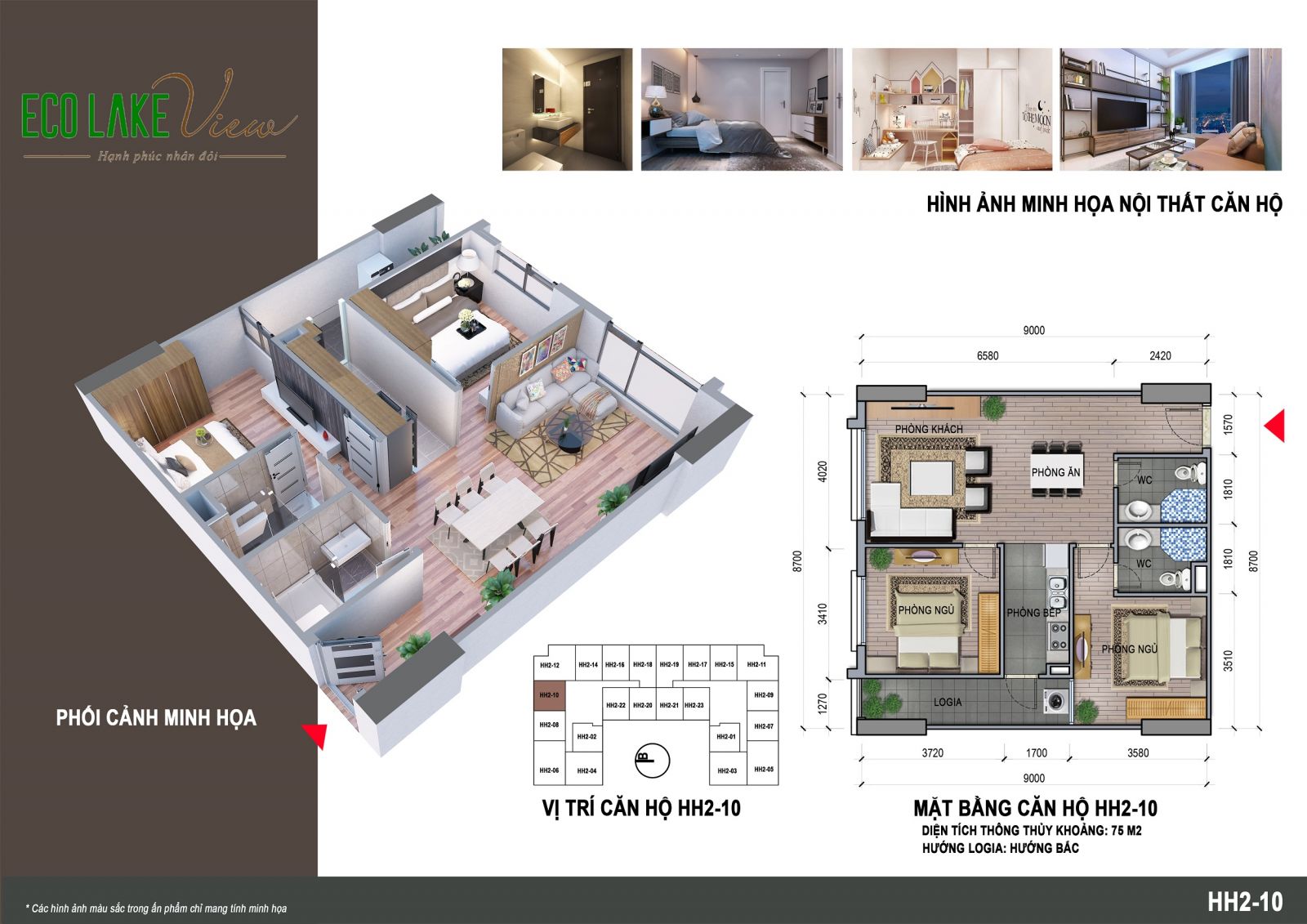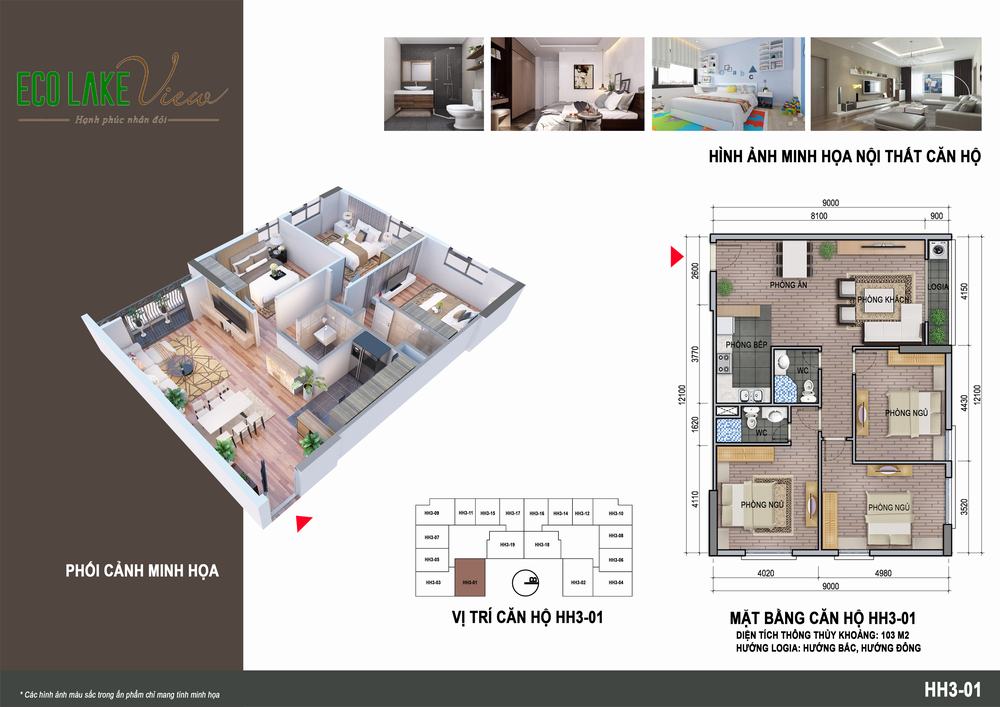 • Với những thiết kế hiện đại, áp dụng các tiêu chuẩn kiểu mẫu cho những căn hộ tại Chung cư Eco Lake View người mua nhà có thể hoàn toàn yên tâm về không gian sống, việc vận dụng các yếu tố phong thuỷ vào trong từng thiết kế với chủ đạo các căn hộ đều lấy cảm hừng “Chạm tay vào Nắng và Gió” kết hợp tinh tế với thiên nhiên, mang thiên nhiên vào từng căn hộ nhưng vẫn giữ được sự sang trọng và đẳng cấp.