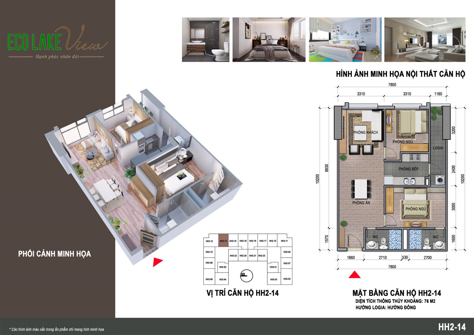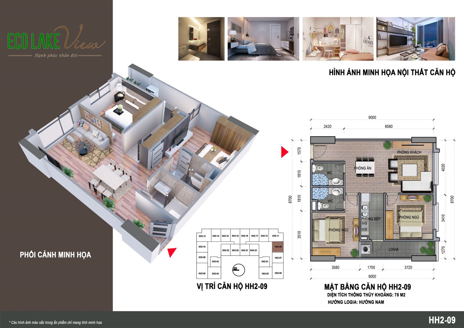 • Các căn hộ tại Eco Lake View đây được chăm chút tới từng chi tiết, trang bị full nội thất cao cấp như khóa cửa thông minh, cửa chống cháy Lecmax, hệ thống điều hòa Multi Mitshubishi, thiết bị vệ sinh Kohler... Các căn hộ có tầm nhìn thoáng đãng, nơi cư dân có thể ngắm trọn vẹn cảnh sắc xanh mát của công viên, hồ điều hòa cũng như thành phố lung linh khi đêm về.