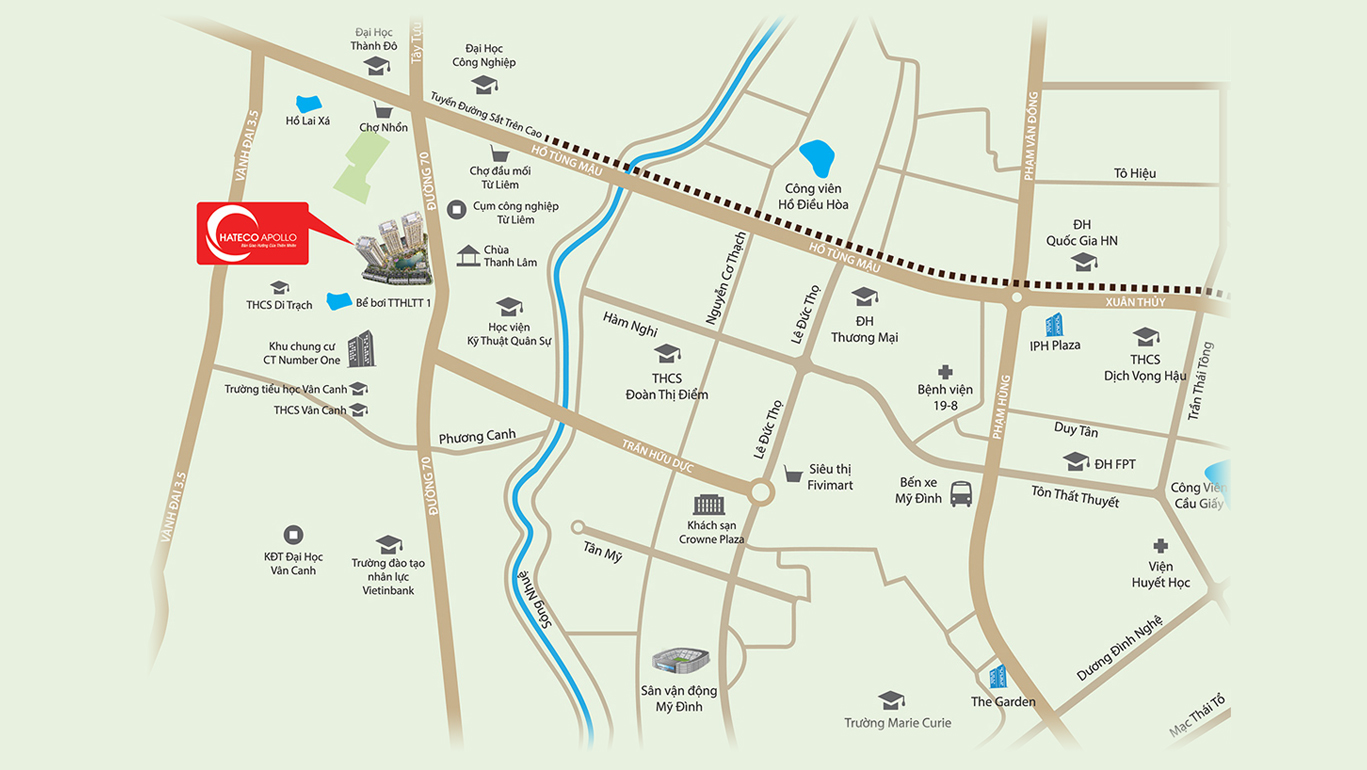 • Dự án chung cư Hateco Xuân Phương được xây dựng tại khu vực đang được thủ đô chú trọng đầu tư phát triển về hệ thống cơ sở hạ tầng với nhiều tuyến đường trọng điểm như quốc lộ 70, Trần Hữu Dực kéo dài,…