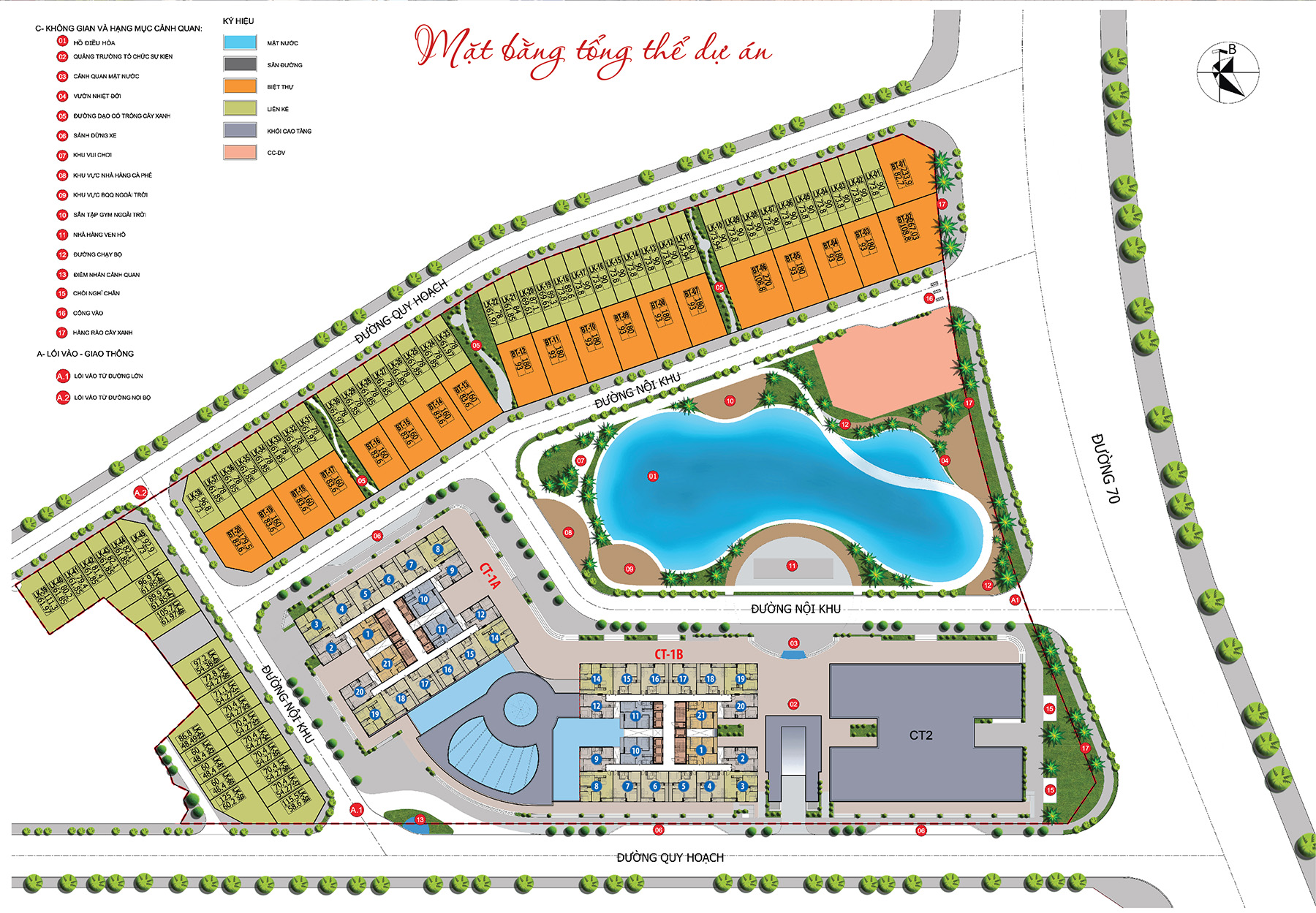 • Tổ hợp thương mại dịch vụ, biệt thự, liền kề và khối cao tầng bao gồm: