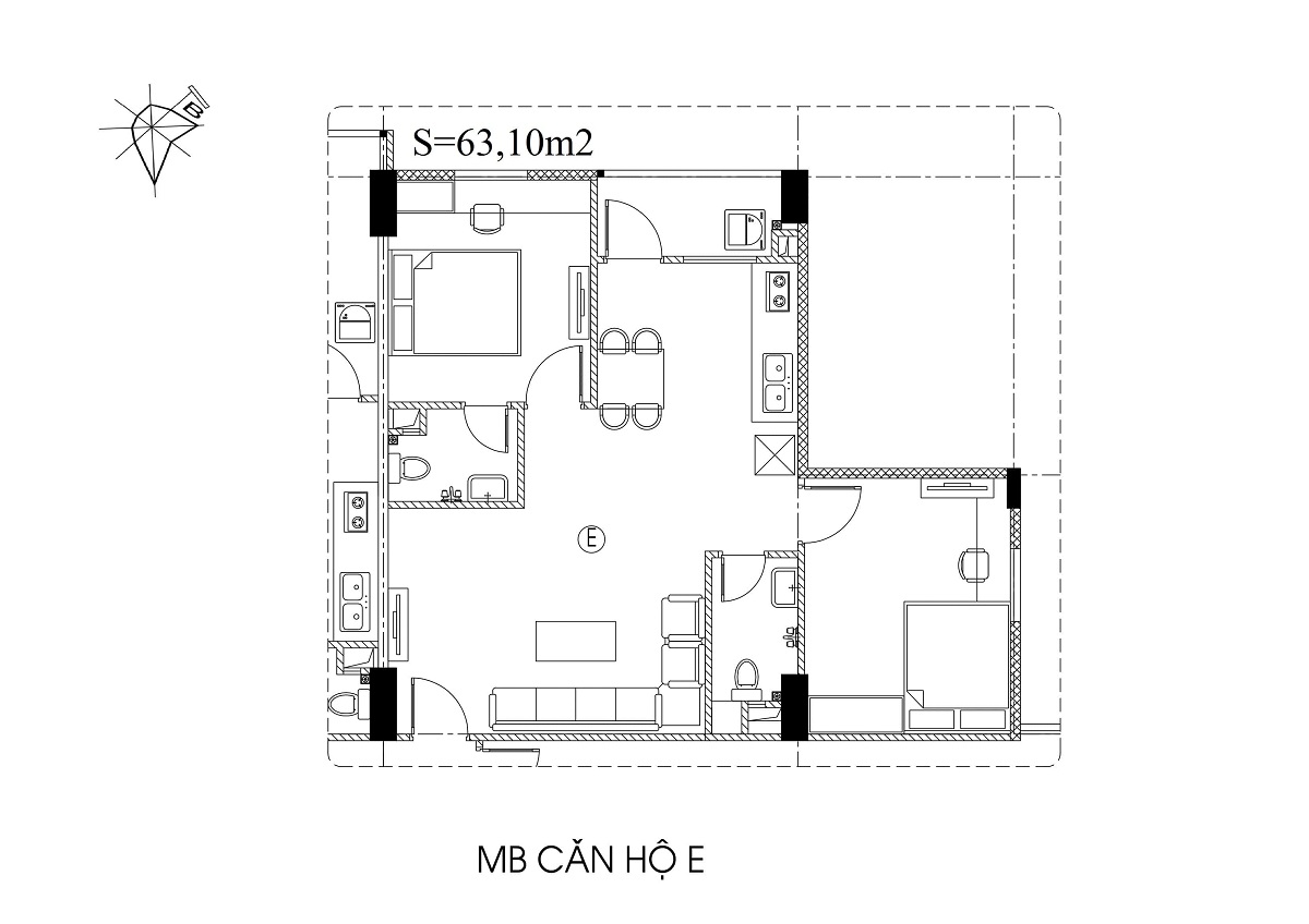 • Quy mô: Gồm 1 tòa chung cư + 3 dãy liền kề.
