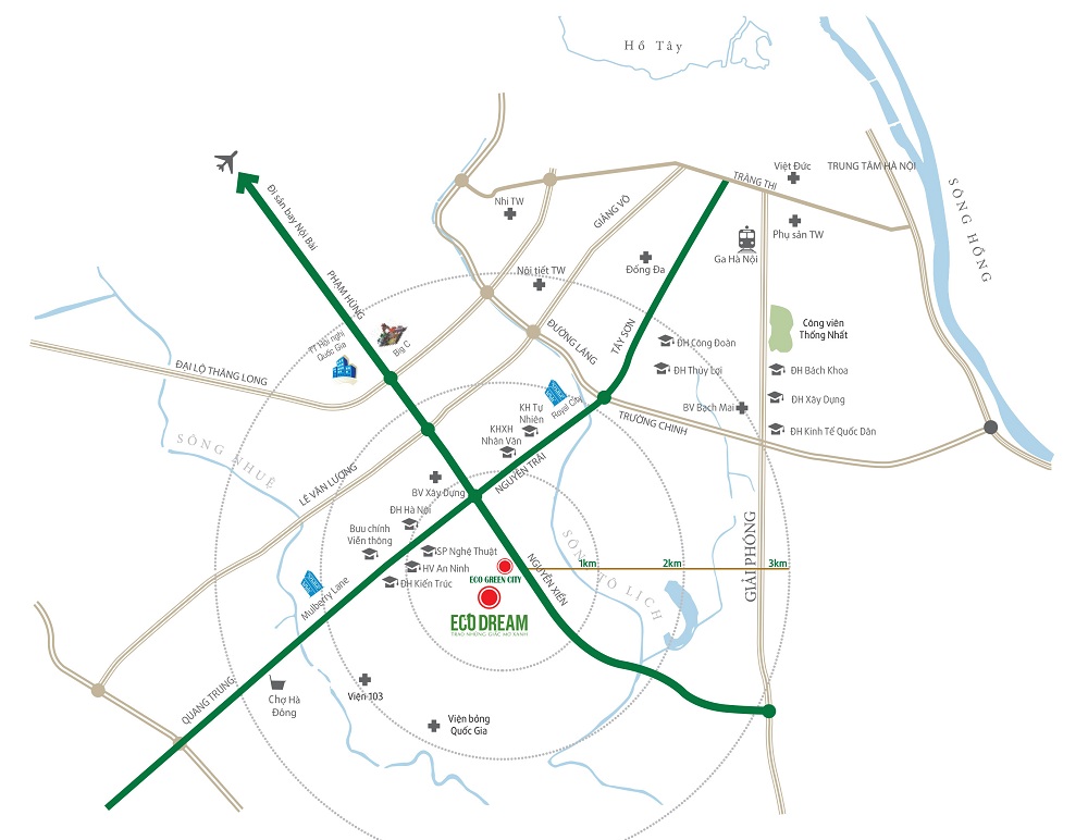 • Eco Dream City tọa lạc tại vị trí vàng tại lô đất TT6, mặt đường Nguyễn Xiển thuộc khu đô thị Tây Nam Kim Giang I. Từ dự án Eco Dream có thể dễ dàng di chuyển vào trung tâm của thủ đô Hà Nội.