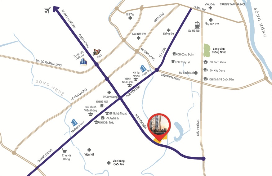 • Với hệ thống trục đường lớn đã và đang được đầu tư như Nguyễn Trãi, Trần Duy Hưng, Tôn Thất Tùng kéo dài… và đặc biệt với hệ thống tàu điện trên cao cư dân dễ dàng di chuyển đến các địa điểm trung tâm thành phố như Hồ Gươm, Quảng trường Ba Đình, Trung tâm Hội nghị Quốc gia.