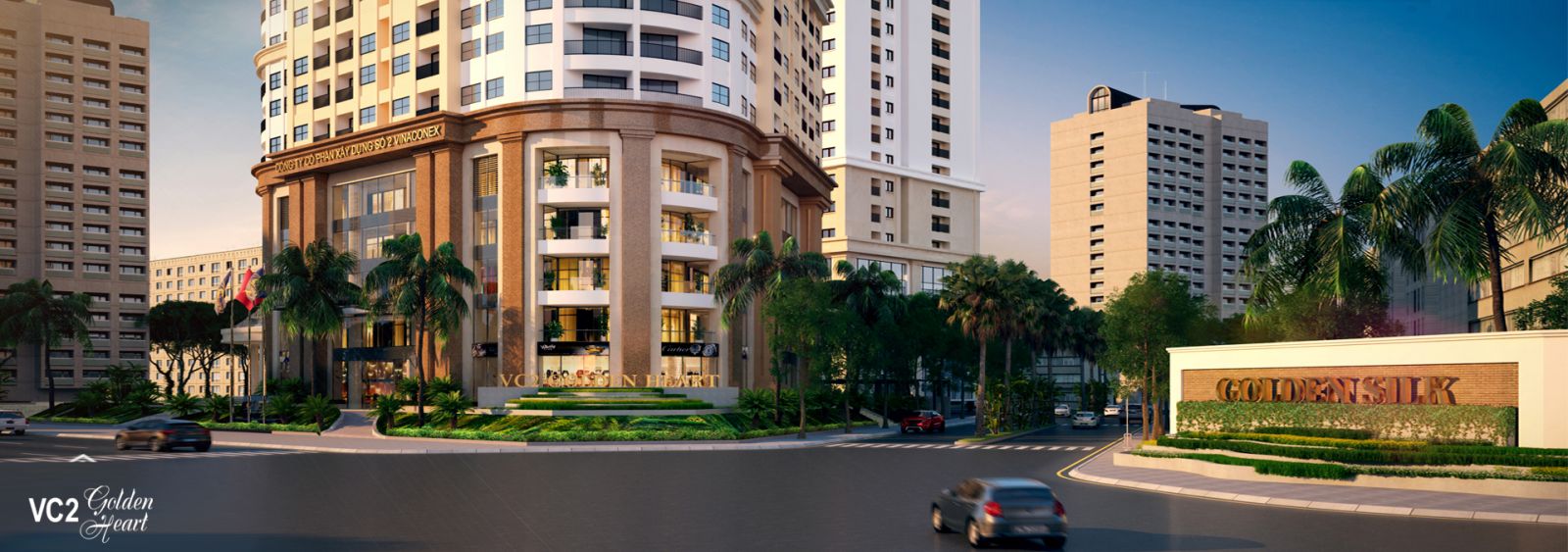 • VC2 Golden Heart là tòa căn hộ đẹp nhất nằm trong khu đô thị, tọa lạc tại vị trí đắc địa giáp cửa ngõ phía Tây Nam thành phố Hà Nội, ngay cạnh trục đường vành đai 3 tại điểm tiếp giáp với tuyến đường cao tốc nối đường vành đai 3 với các tuyến đường Quốc lộ 5 và Quốc lộ 1. Tạo điều kiện thuận lợi cho cư dân VC2 Golden Heart dễ dàng kết nối tới mọi địa điểm văn hóa và hành chính của Thành Phố Hà Nội.