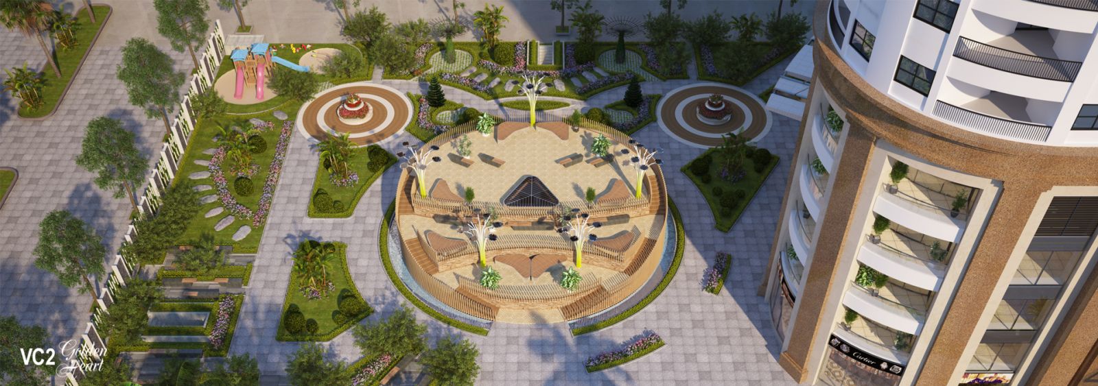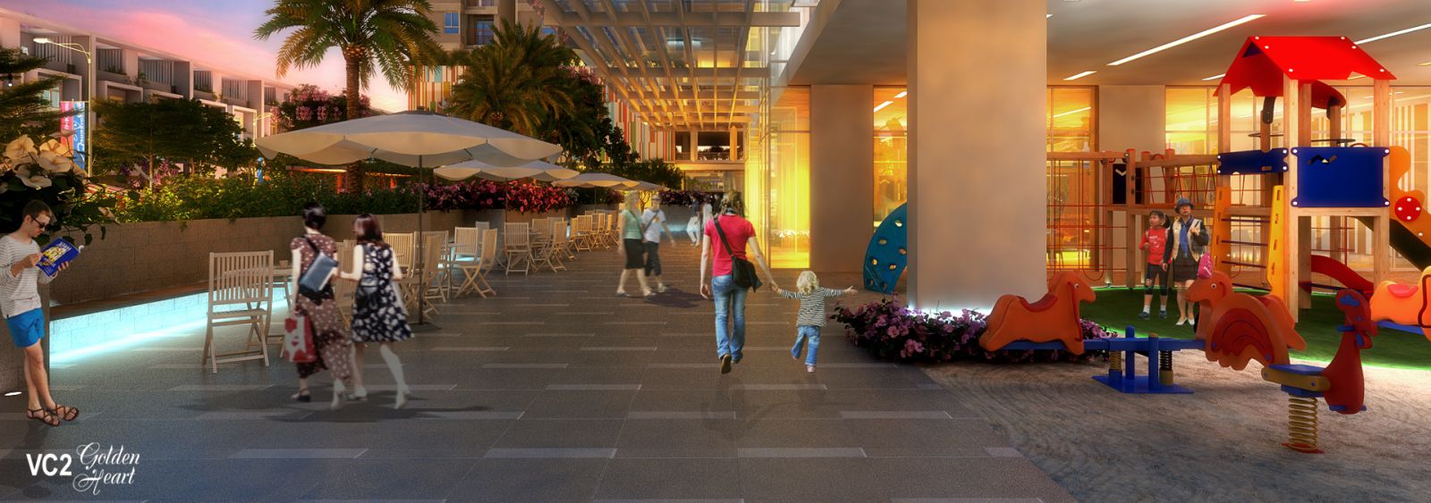 • Tại VC2 Golden Heart các cư dân được sử dụng những tiện ích hiện đại bao gồm; Khu tập Gym hiện đại, Spa, Nhà trẻ tiêu chuẩn Quốc tế, Bể bơi cao cấp, Trung tâm thương mại sang trọng, nhà hàng Âu Á, Cafe View, khu vườn đi dạo cùng cây xanh 4 mùa...